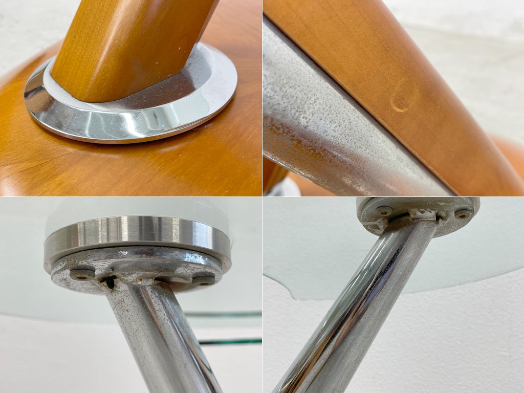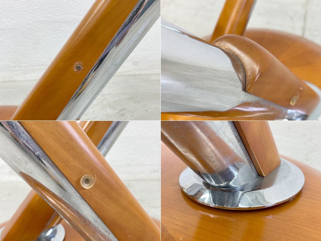 テーブルの可動は問題ありませんが、可動支柱のクロームメタル部に経年の取り切れない錆などがございます。