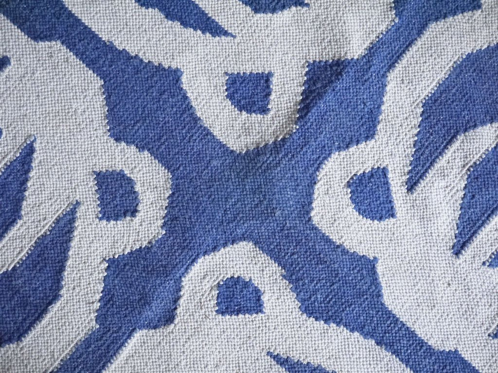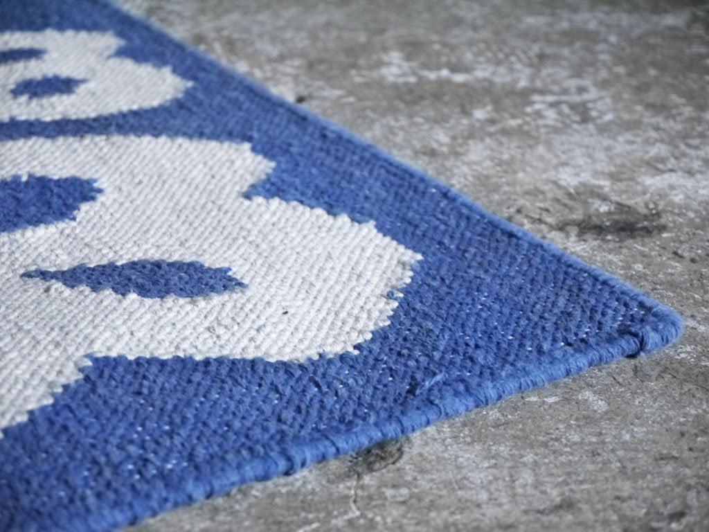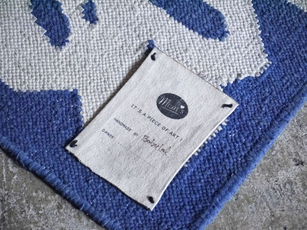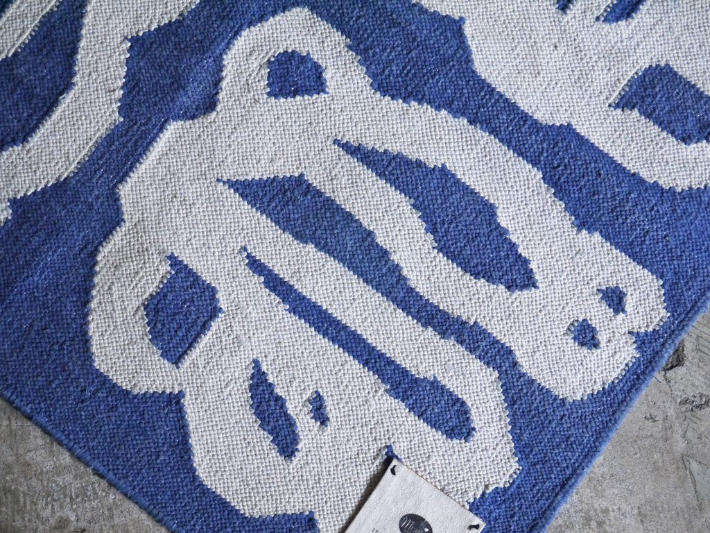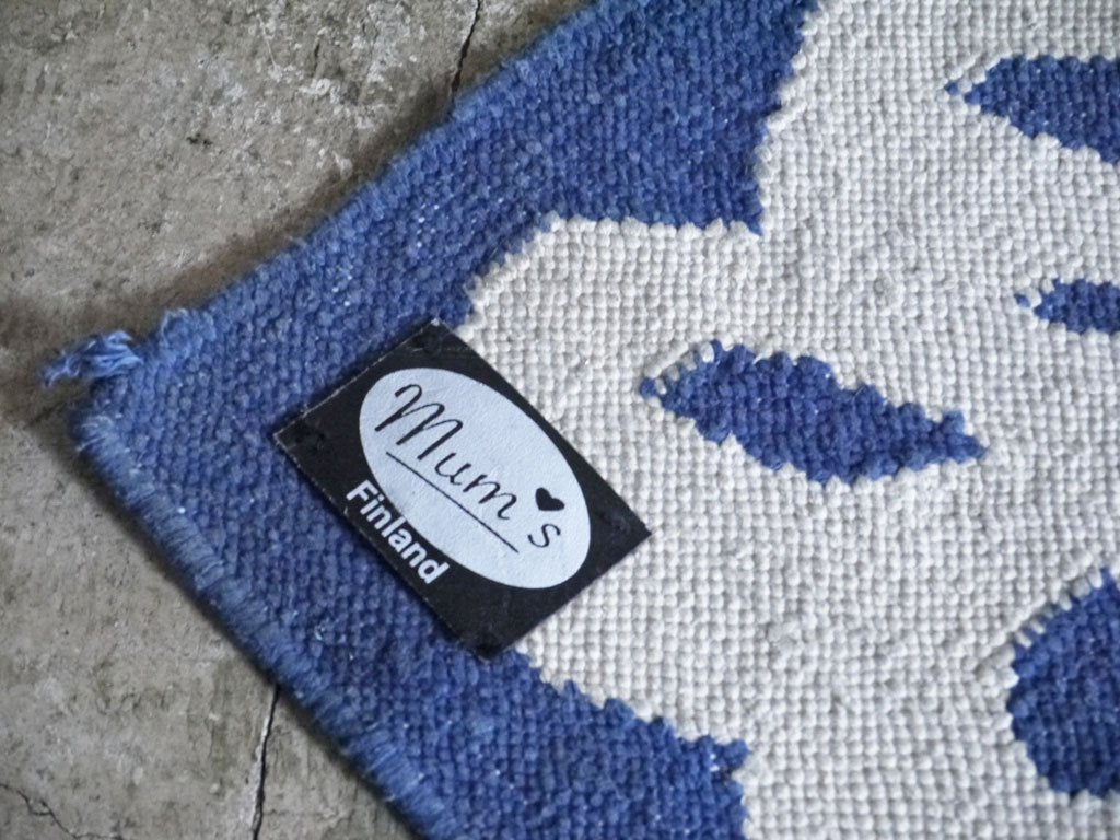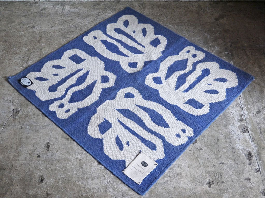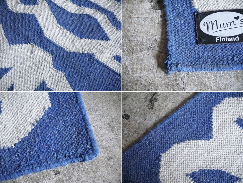 ムムス MUM's スクエアラグ Babulal ホワイト × ブルー カーペット 90cm 手織り絨毯 フィンランド ■