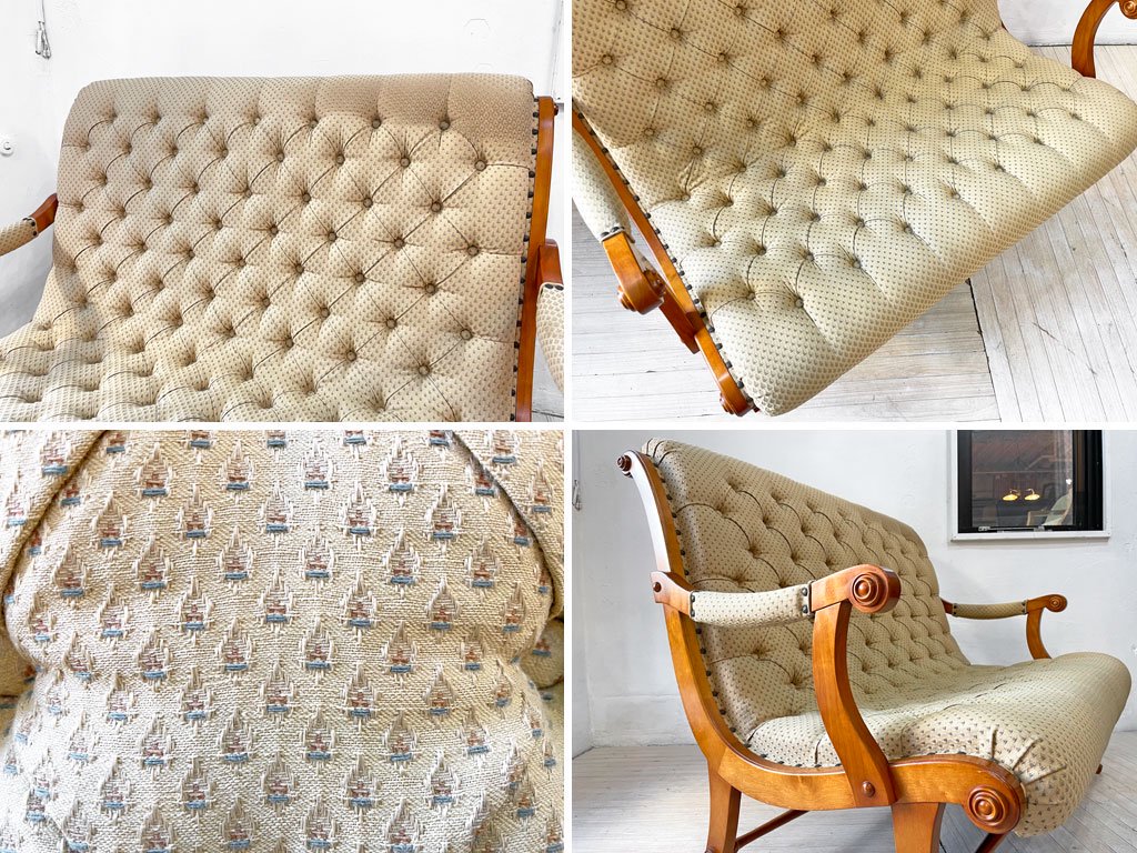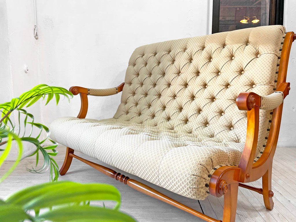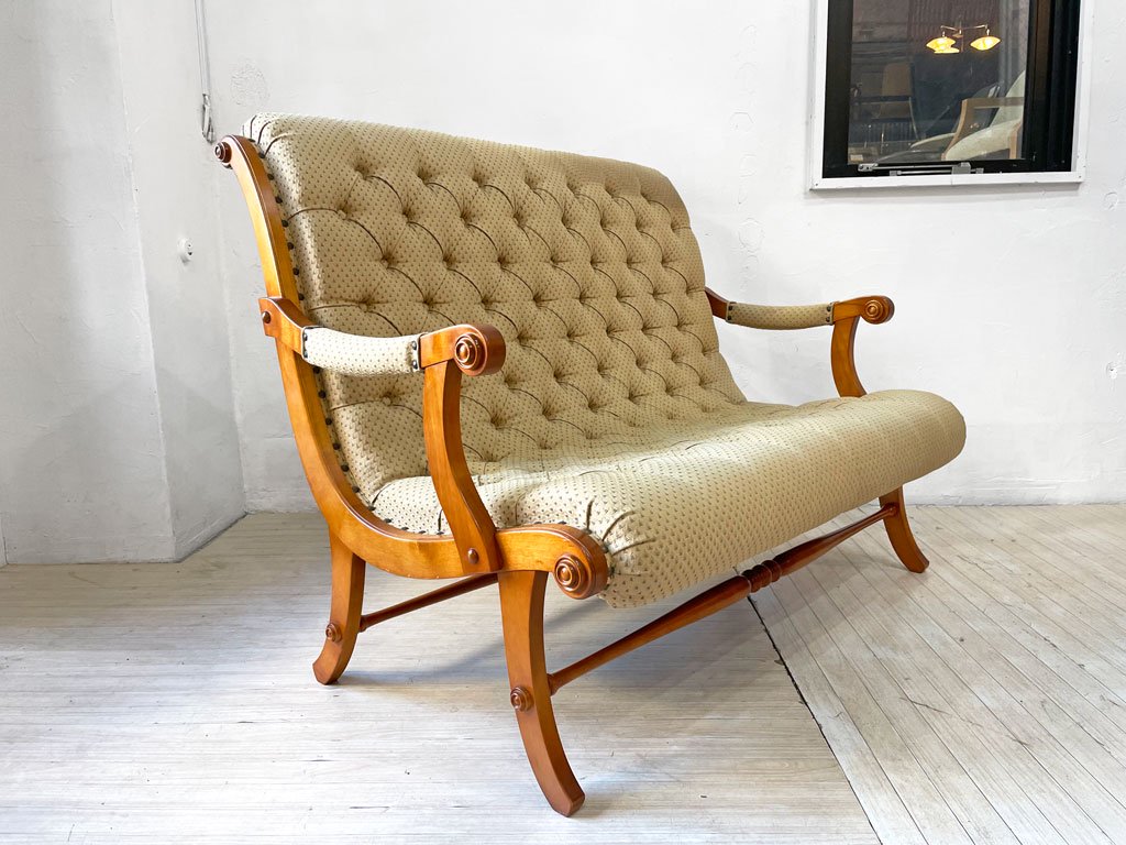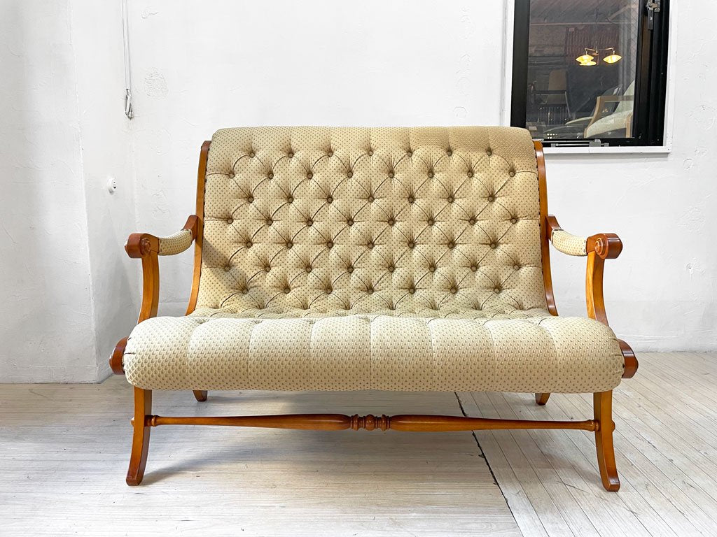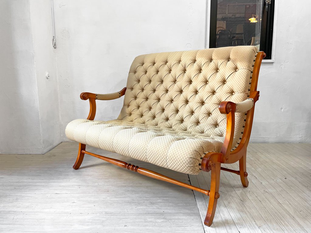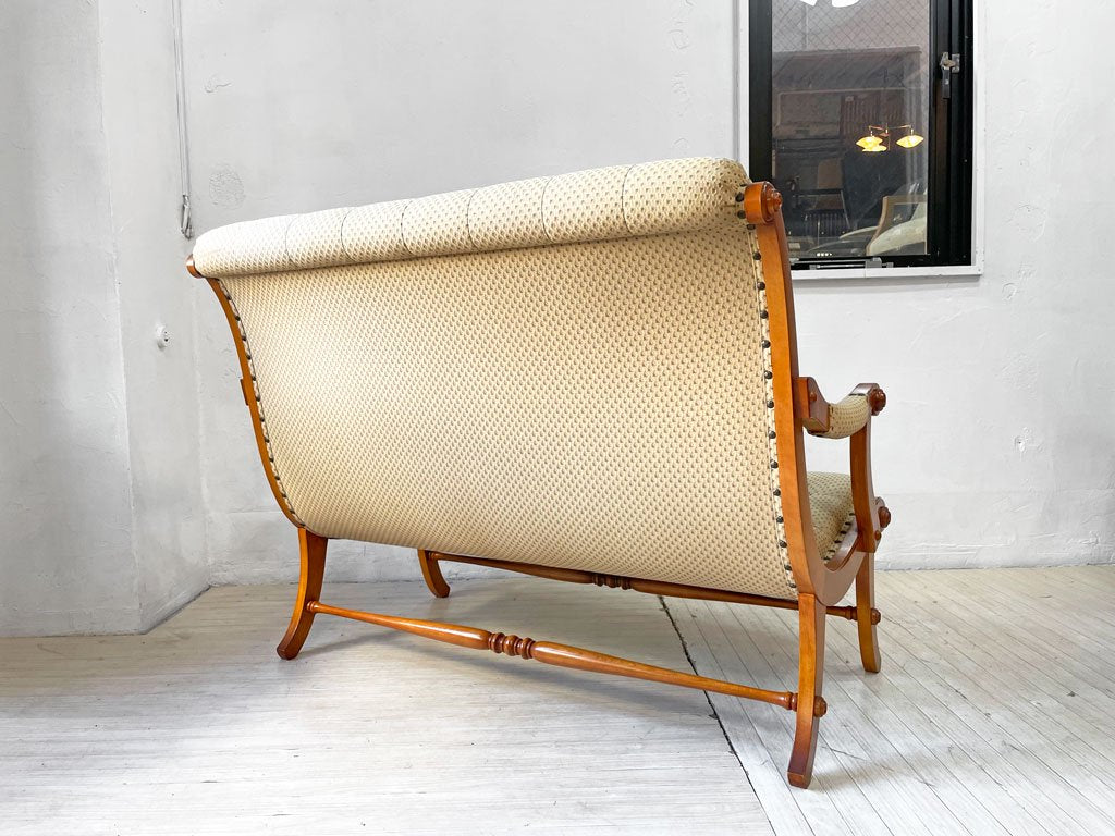 横浜ダニエル DANIEL ブーツ Boot ラブシート 2人掛けソファ 樺桜材 アイボリー系ファブリック スタッズ 鋲打ち クラシカル ★