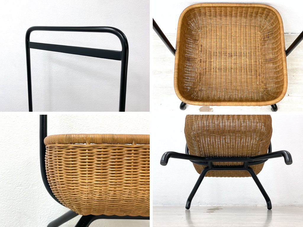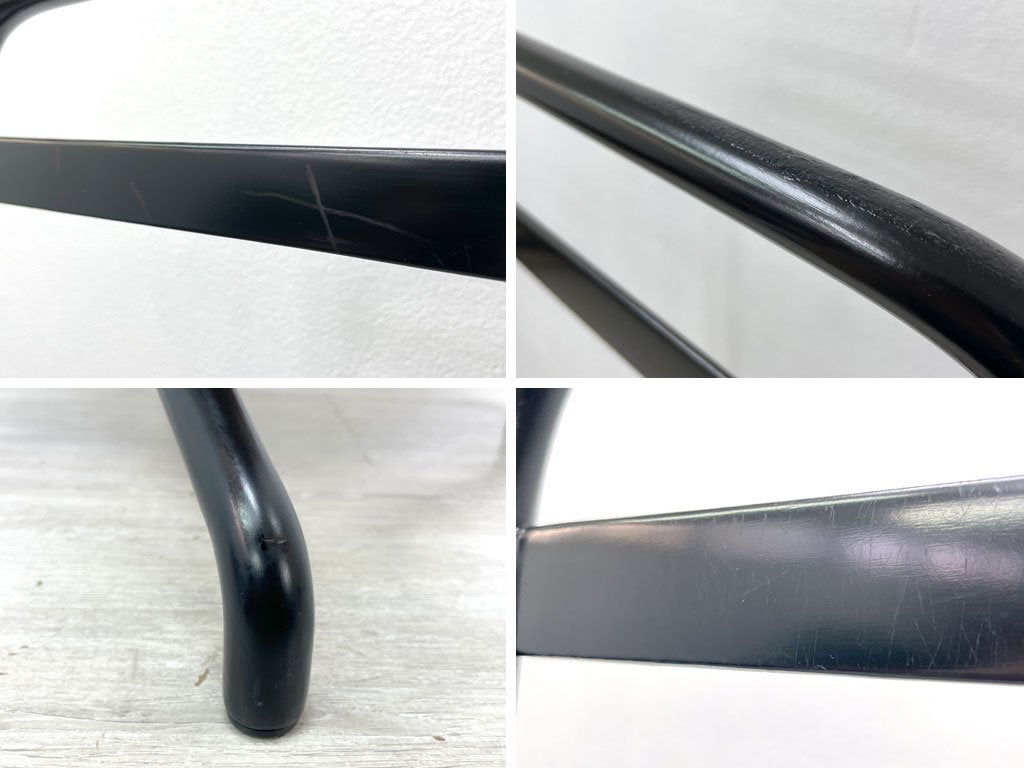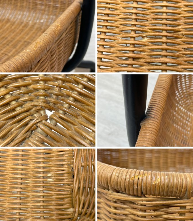 使用に伴い、フレームには線傷や擦れ、打痕、ラタン部分には軽微な擦れや表面の剥がれ、僅かにフレグランス臭が感じられます。またフレームには塗装の劣化が数箇所見られ、そのうち上部の一箇所には僅かなベタつきが感じられるものの、ご使用には問題ございません。その他美観を大きく損ねるような汚れや、機能を損ねるような大きなダメージなどは見られず、これからも実用頂けるコンディションを保っております。