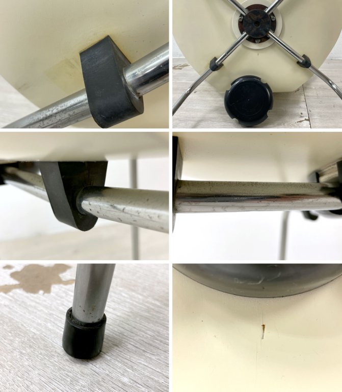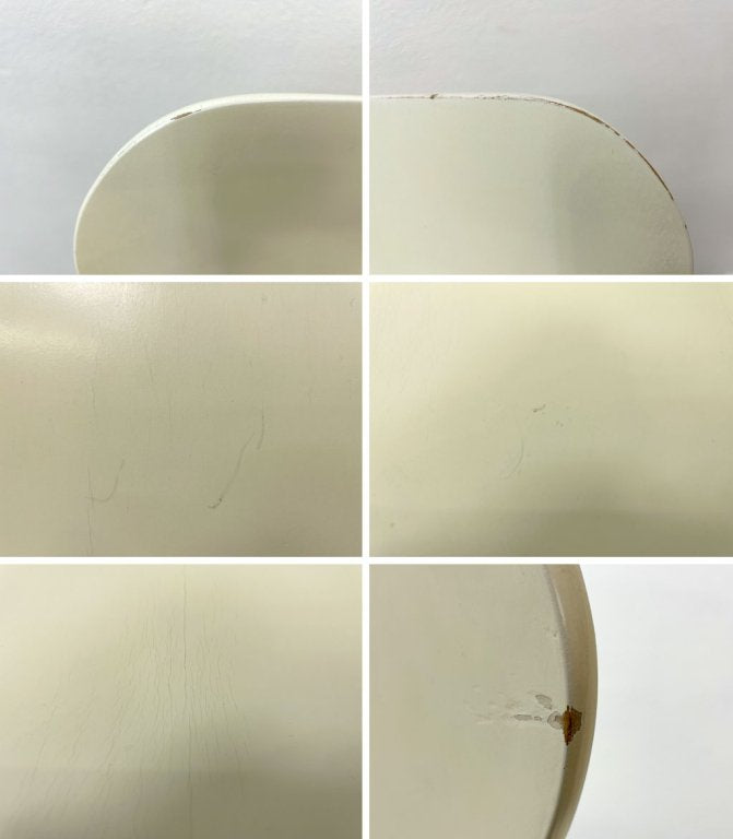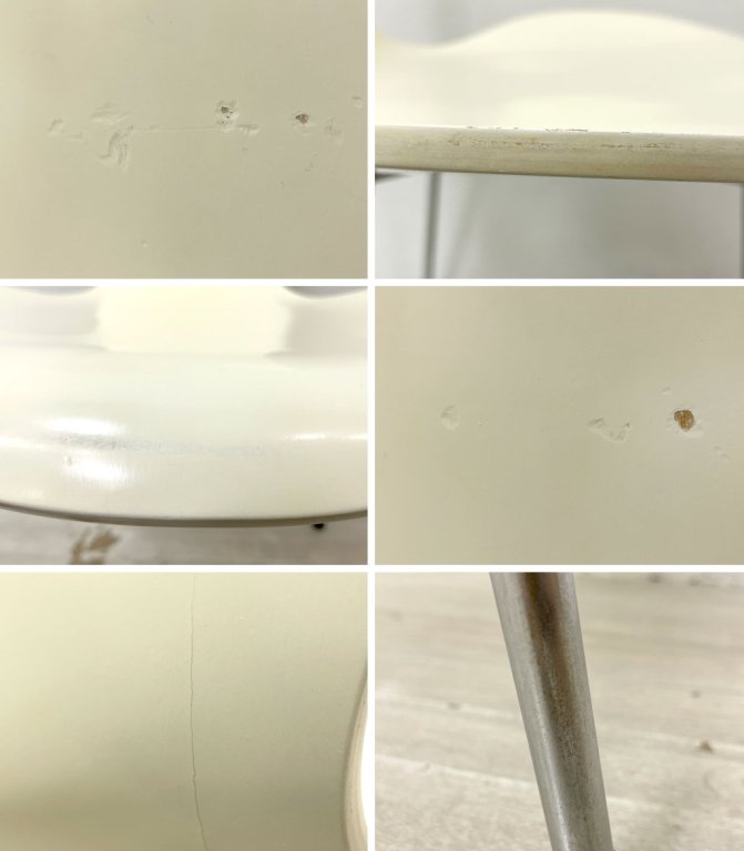 背面や座面に、打痕によるペイントロスが散見されます。使用に問題となるフレームの歪みや脚のガタツキはなく、ビンテージの風合いを楽しみながらご使用頂けるコンディションを保っております。