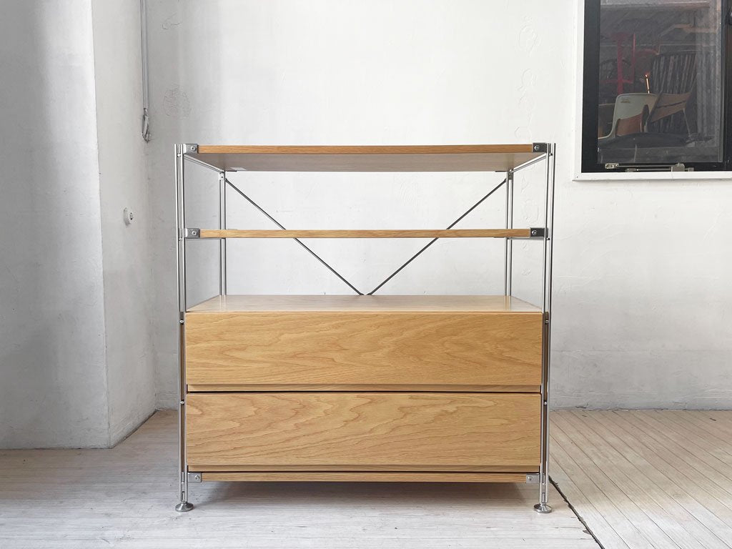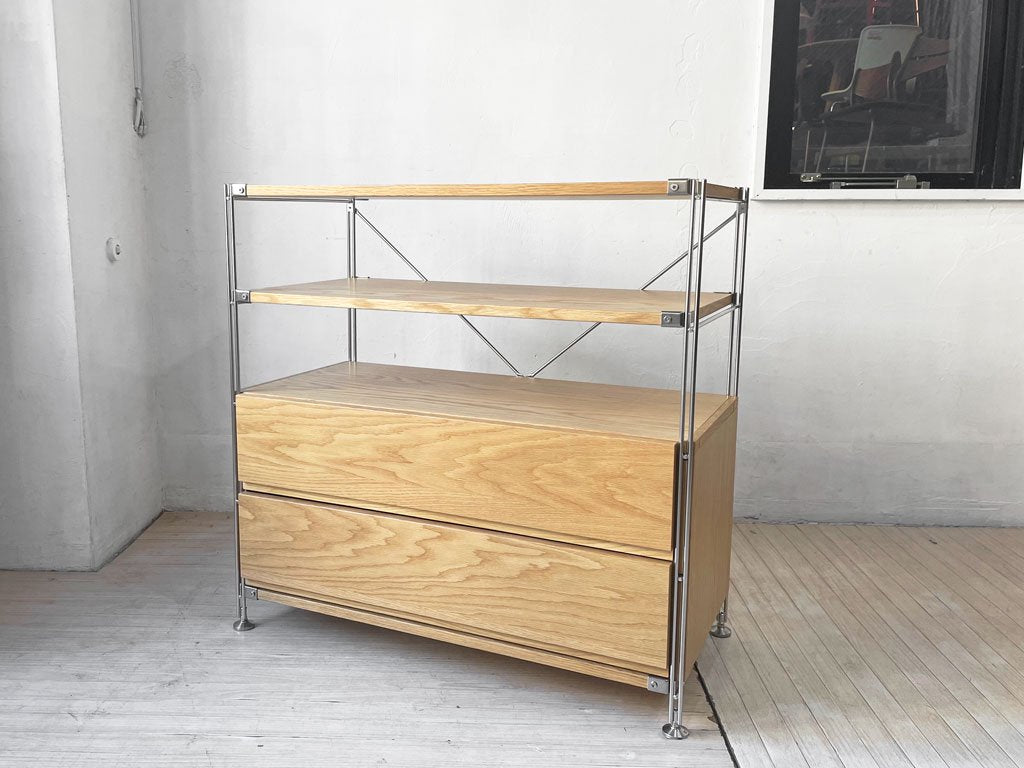 無印良品 MUJI ステンレスユニットシェルフ オープンシェルフ オーク材 W86 抽斗2杯付 参考定価¥45,800- ★