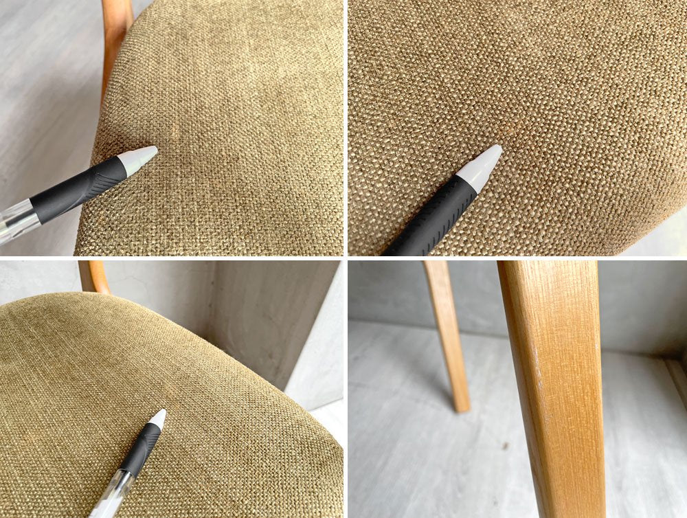 軽微な打痕や擦れ痕、ファブリックに色褪せや染みが見受けられます。使用に問題となるダメージは無く、これからも実用可能なコンディションを保っております。