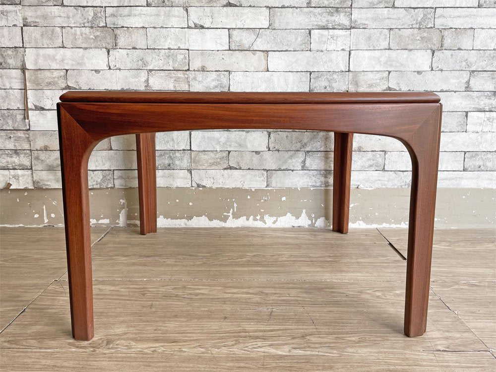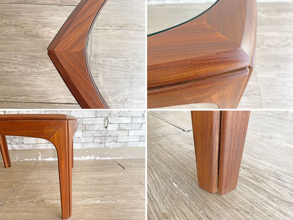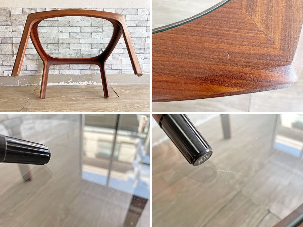 チーク材の風合いが存分に感じられるしっかりした造り、丸みを帯びた独特のスクエア形のガラス天板がぴったりとフレームに嵌ることからもその工作技術と品質の確かさがうかがえます。