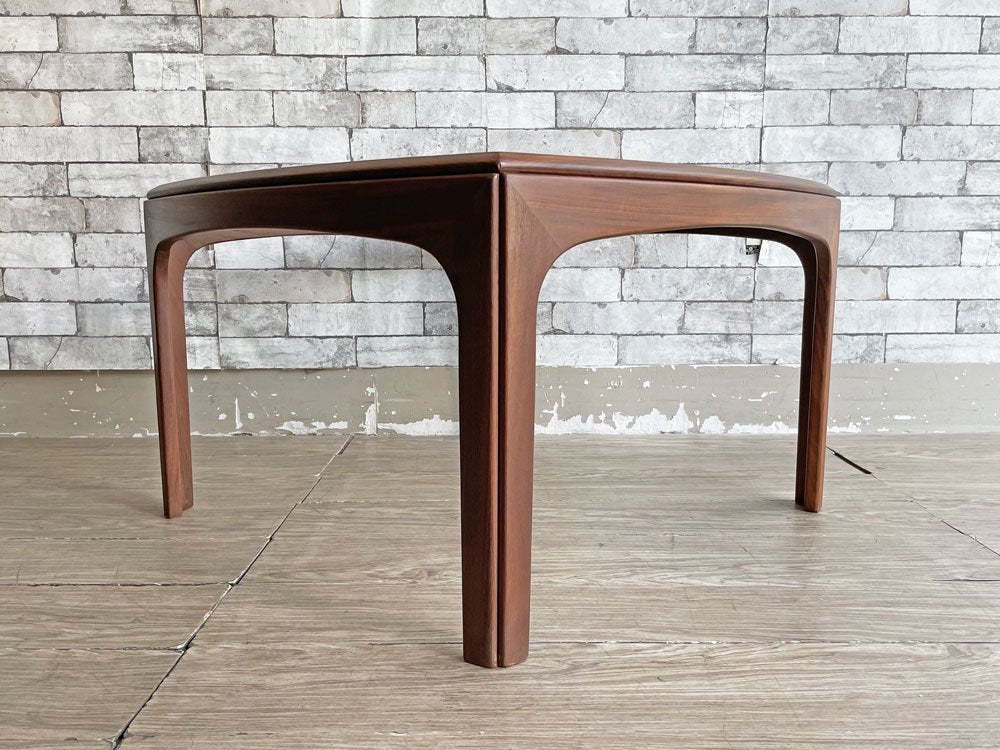 UKビンテージ界隈で1,2を争う人気を誇るG-PLAN。 ご縁がありimptionでも度々お取り扱いをさせて頂いております。ブログの更新が停止中の間にもG-PLANの入荷がある度に即売れが続き、どれもブログ記事でご紹介ができず悔やむような良いものばかりでした。今回こうしてご紹介できるのは僥倖というものでしょう、同ブランドの中でも一際珍しい形のコーヒーテーブルとなります。