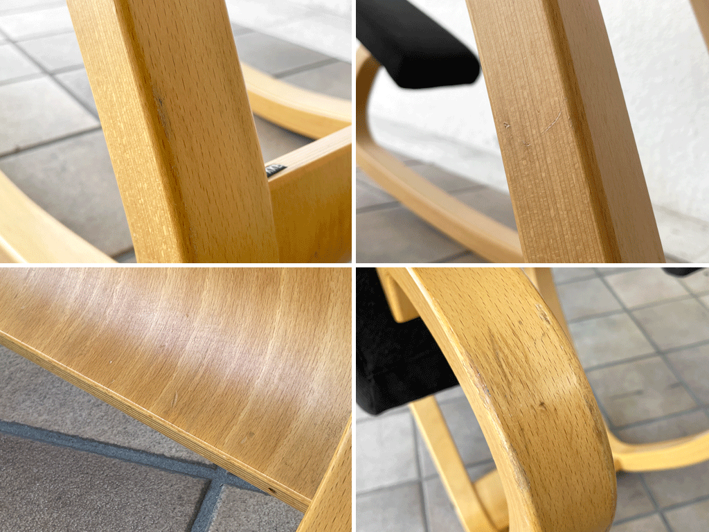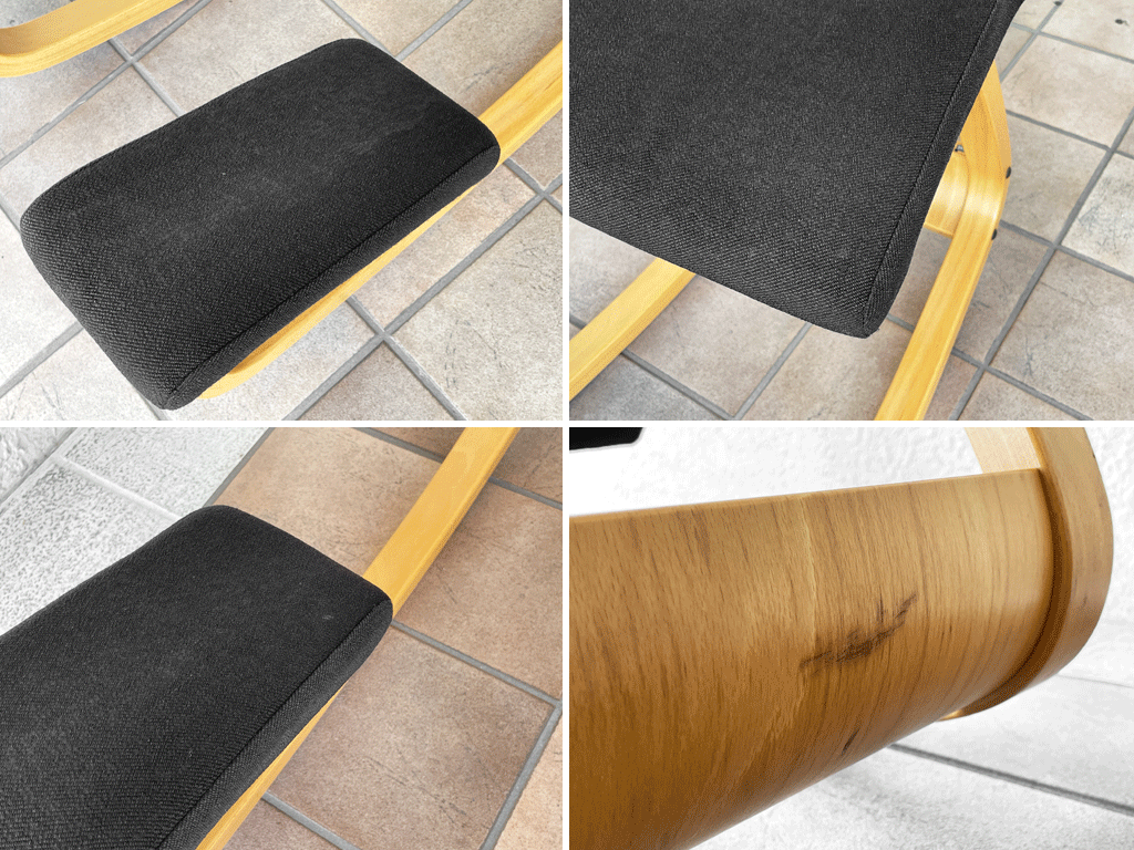 使用に伴いファブリックには薄染み、フレームには地面に近いに擦れ、打痕や削れが見受けられますが、大きく美観を損ねるものではございません。使用上問題となるようなダメージは見受けられず、概ね良好なコンディションを保っております。