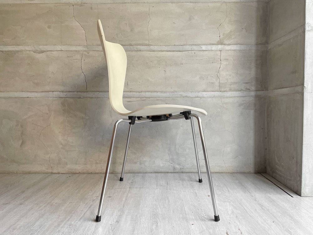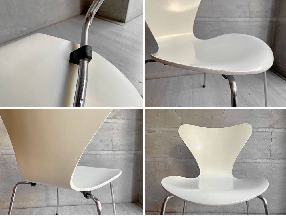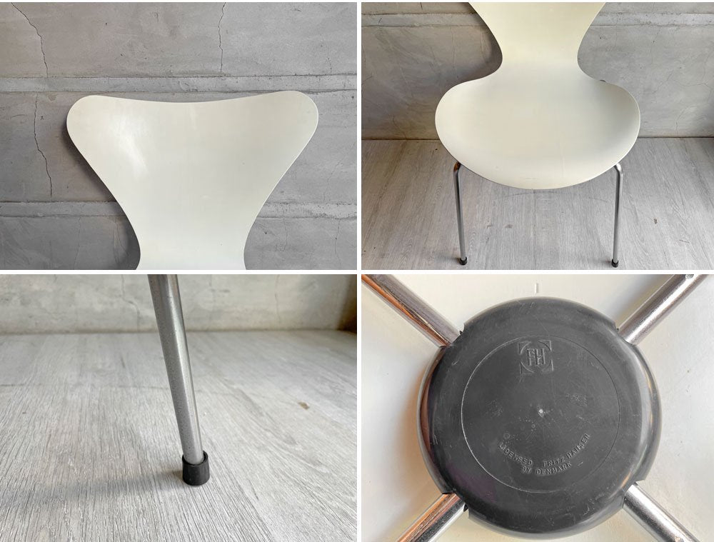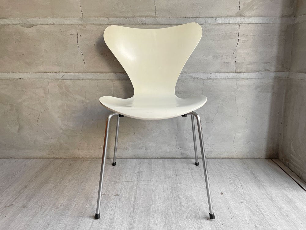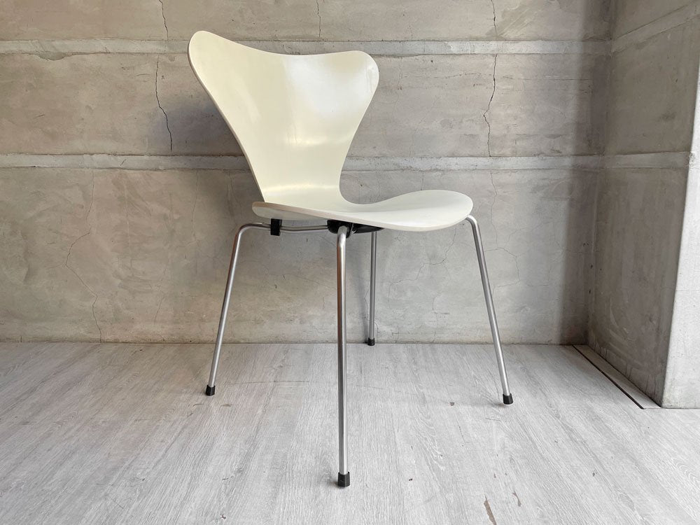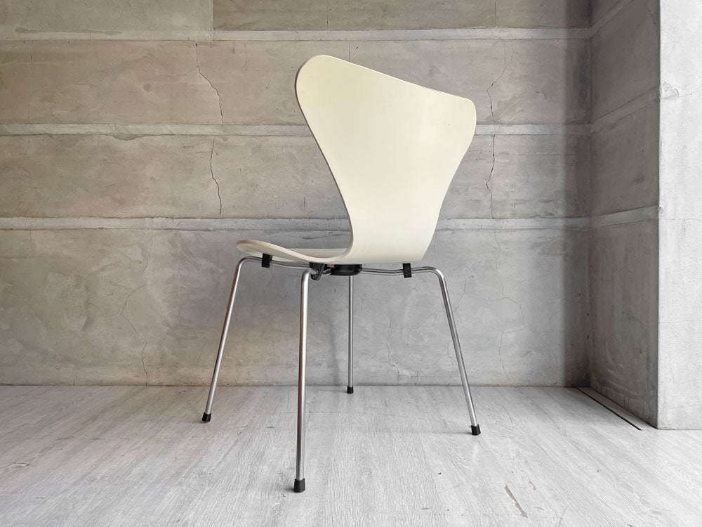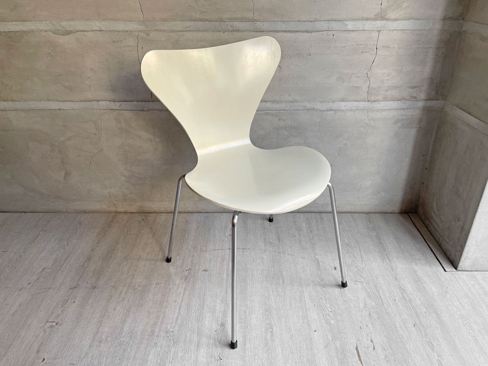 フリッツハンセン Fritz Hansen セブンチェア ダイニングチェア スタッキングチェア ラッカー仕上げ ホワイト アルネ・ヤコブセン 70年代初期 FH黒カバー 旧ロゴ デンマーク 北欧 ♪