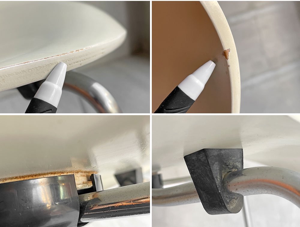 使用・経年に伴い、打痕や擦れ、ペイントロスがございます。脚部には錆やくすみが散見されます。多少の使用感はございますが、使用上問題となるような大きなダメージは無く、ビンテージ品としての風合いとしてお楽しみ頂けるコンディションを保っております。
