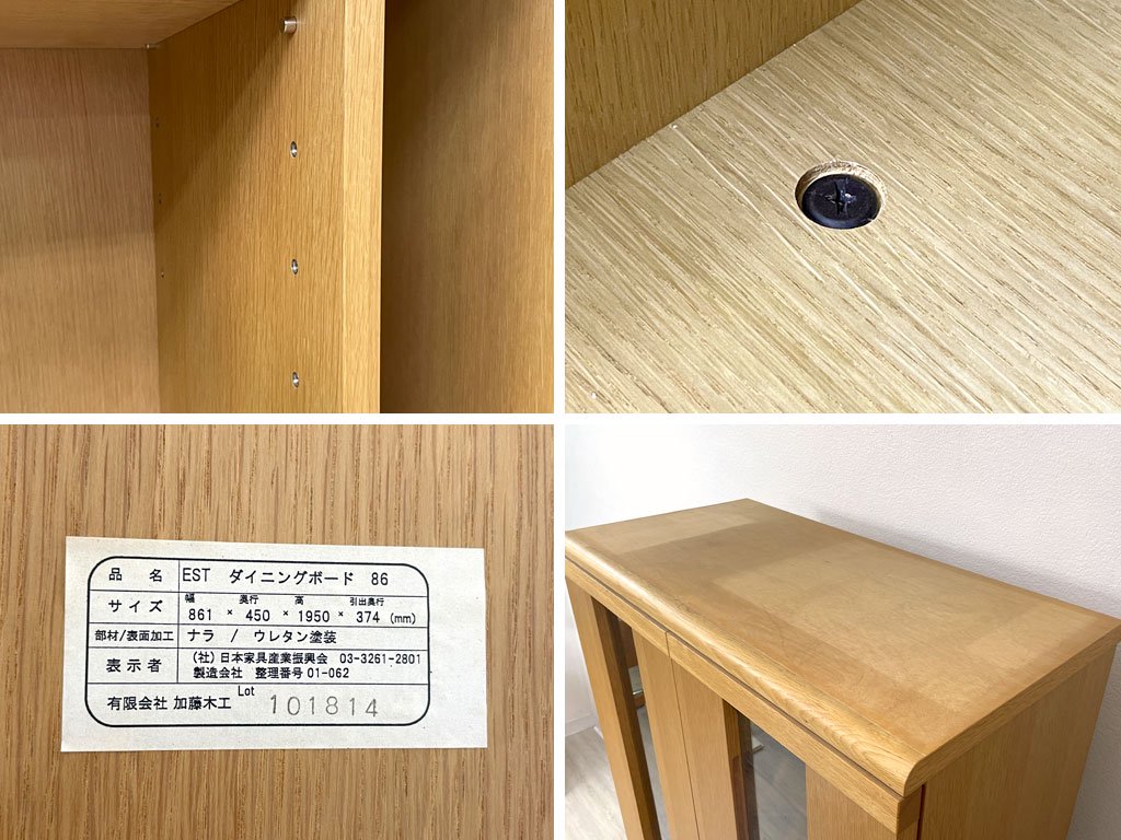 加藤木工 KATOH MOKKOU エスト EST ダイニングボード86 ナラ材 カップボード 食器棚 W86 ナチュラルモダン 旭川家具 国産家具 廃番 ●
