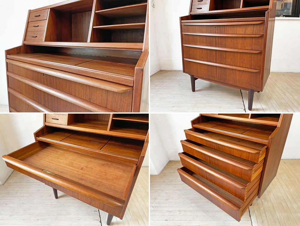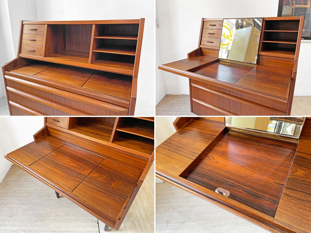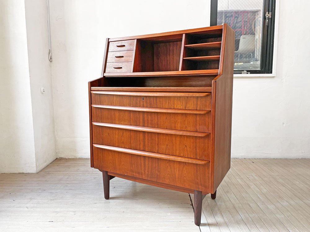 デンマークビンテージ Danish Vintage ライティングビューロー ドレッサーキャビネット ミラー付き チーク材 鍵付き 北欧家具 ~1台3役~