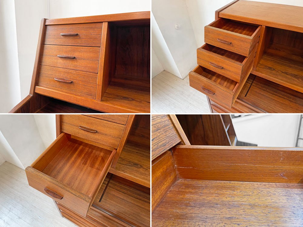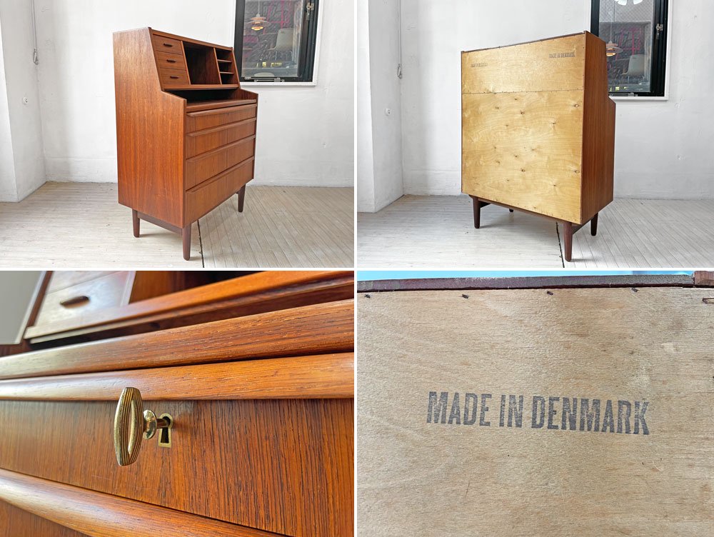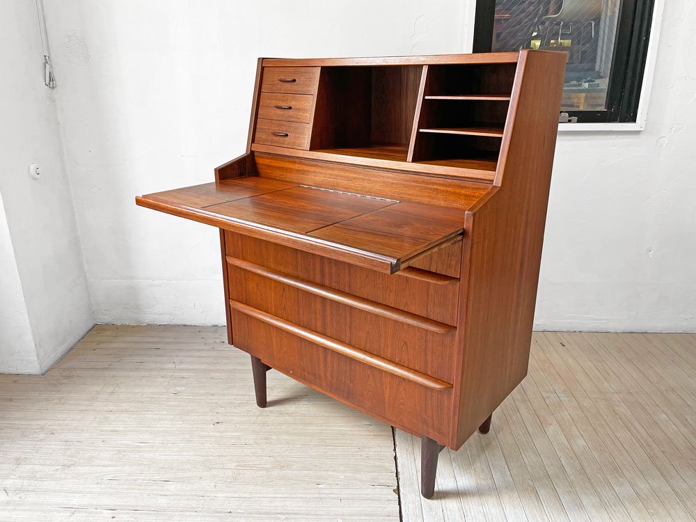デンマークビンテージ Danish Vintage ライティングビューロー ドレッサーキャビネット ミラー付き チーク材 鍵付き 北欧家具 ★