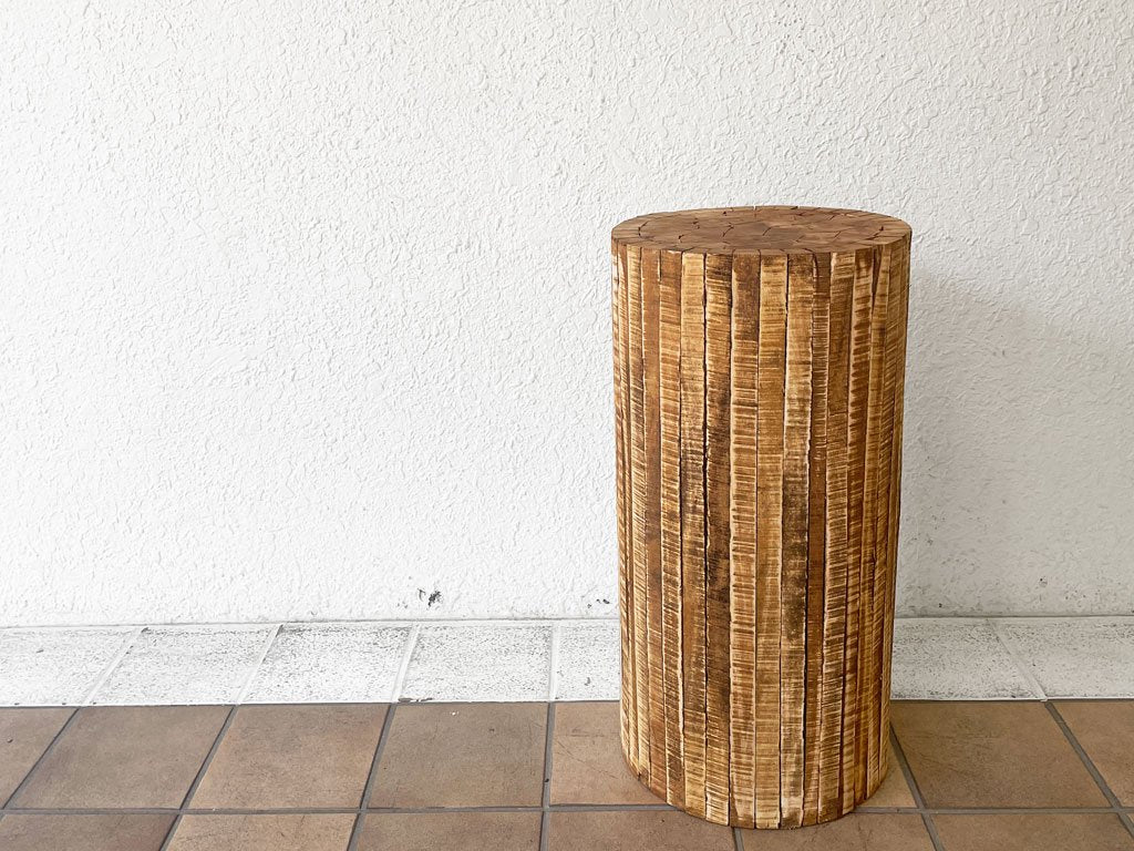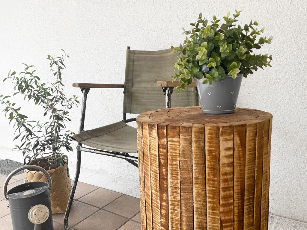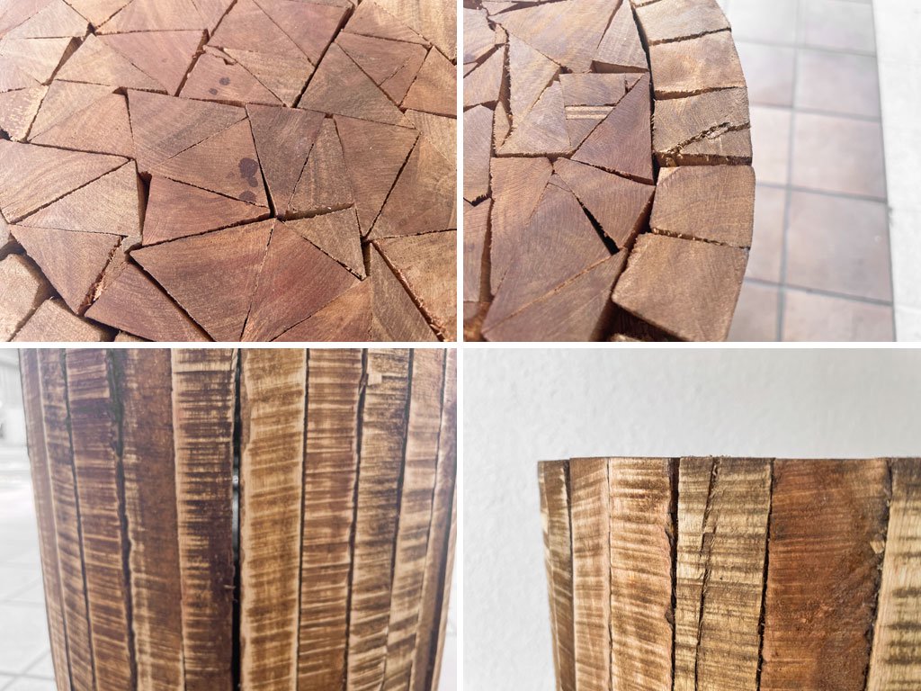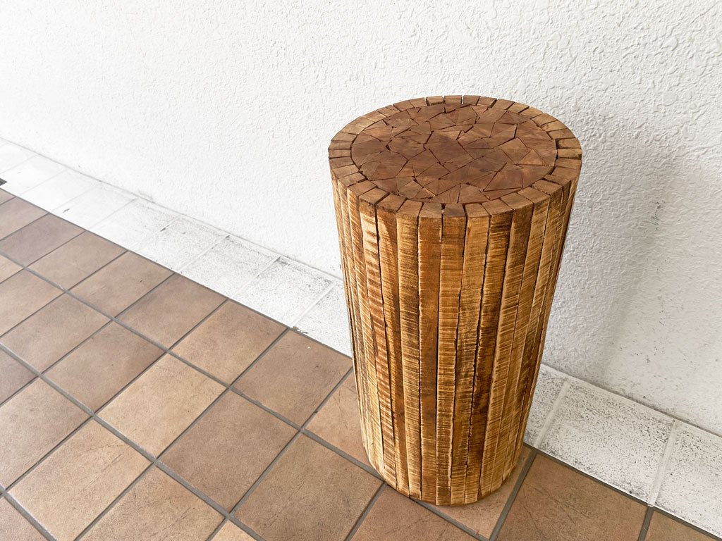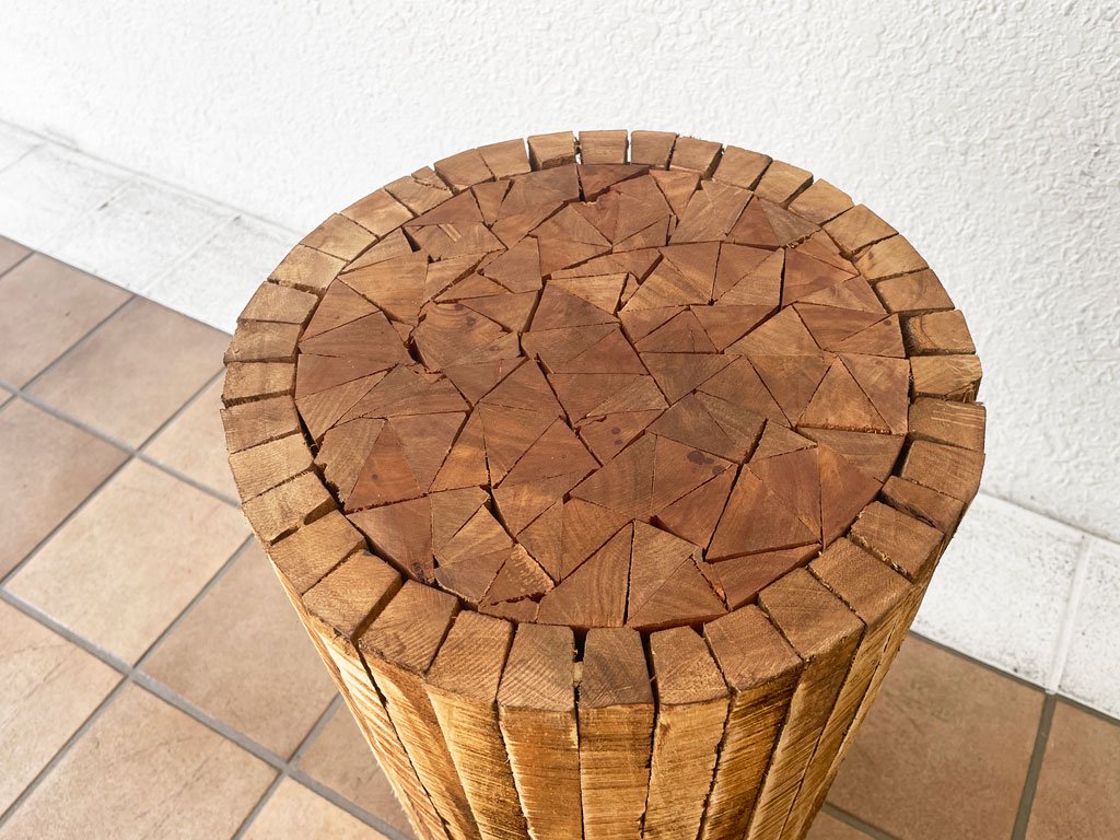 こちらはリサイクルウッドを寄せ集め一つのスツールに仕立てたナチュラル感溢れるアイテム。