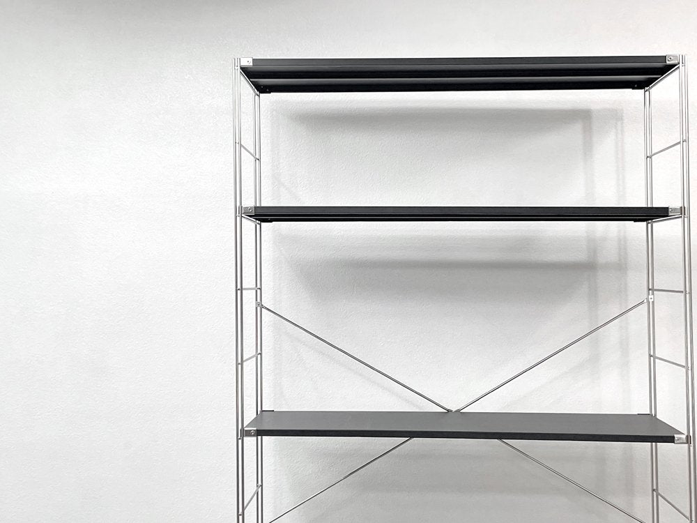 棚板のカラーはダークグレーとお落ち着いたカラーで、ステンレスのフレームとの相性も◎