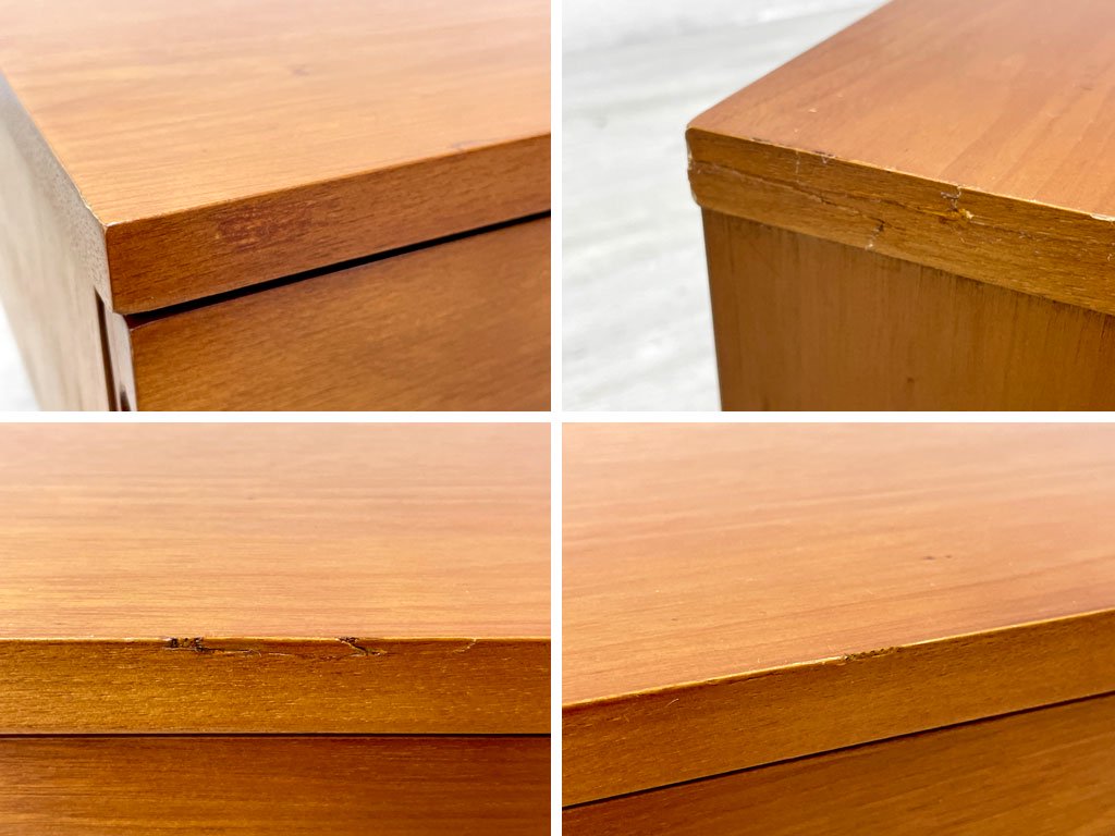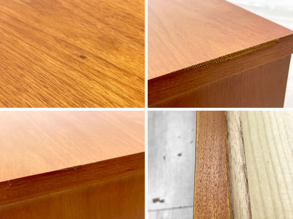 使用に伴う擦れや小傷、成形合板の剥がれや補修痕、染みなど、複数個所にダメージが見受けられますが、美観を大きく損ねるような汚れや、機能を損なうようなダメージなどは特にございません。