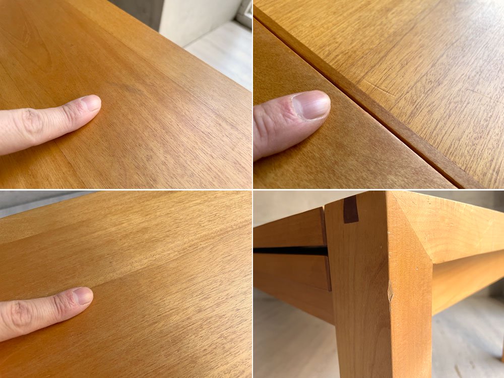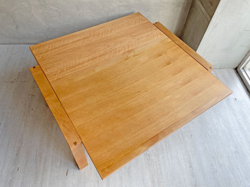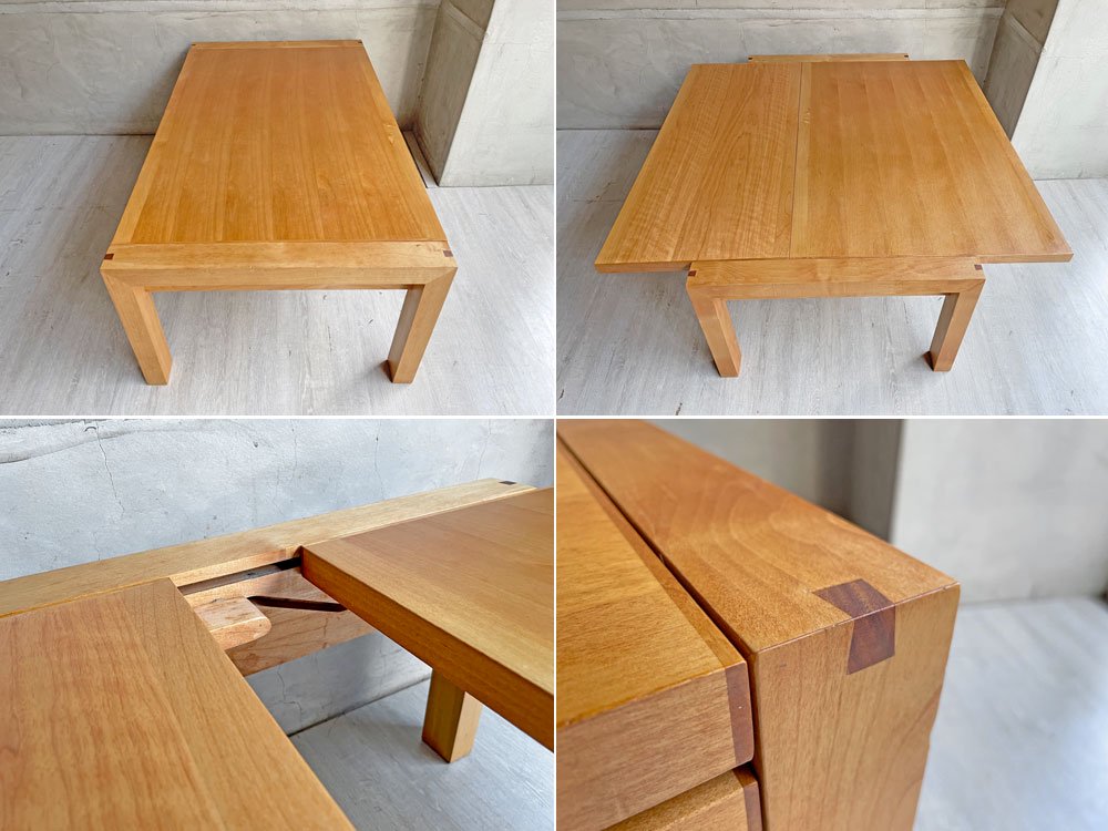 ローテーブルとしては珍しい、長方形から正方形と変化する伸長式を採用したお品物。