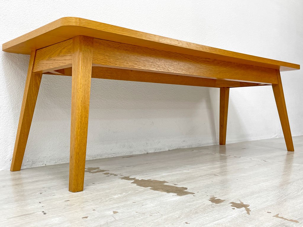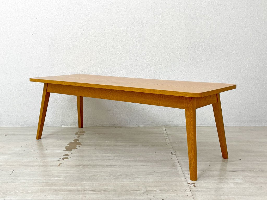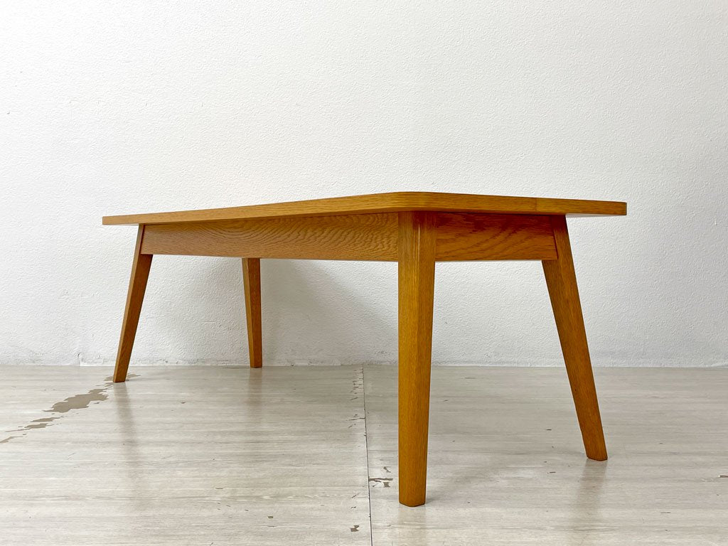 こちらはオーク材突板と無垢材レッグによる飽きの来ないシンプルなデザインの定番ローテーブルです。オーク(ナラ)材は森の木々の中でも最も進化した組織構造があり、故に日本では「森の真打」、西洋では「森の王」という異名を持つ人気の家具材です。