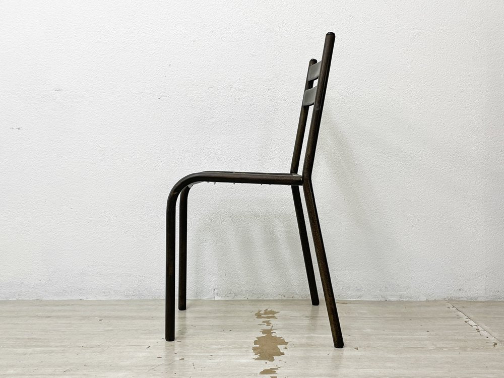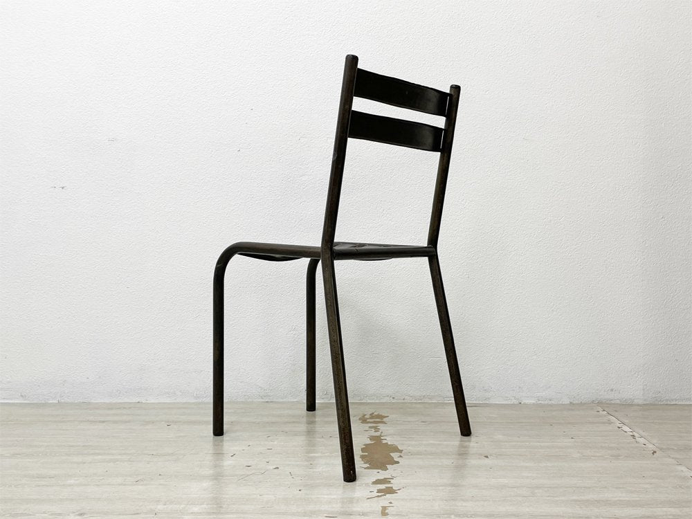 こちらは前所有者様が「フェール トラヴァイユ」にてご購入されたフランスビンテージのスタッキングチェアになります。安価な工業系のスチール家具と異なり、ポリッシュドメタルによる思わず手で撫でてしまう凹凸のある表面が、インダストリアルファンには堪らない逸品です!素朴なデザインは単体としてのご使用は勿論、1脚ずつ異なるデザインの椅子と組み合わせて使いたい方にもオススメです。