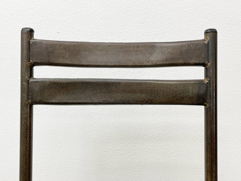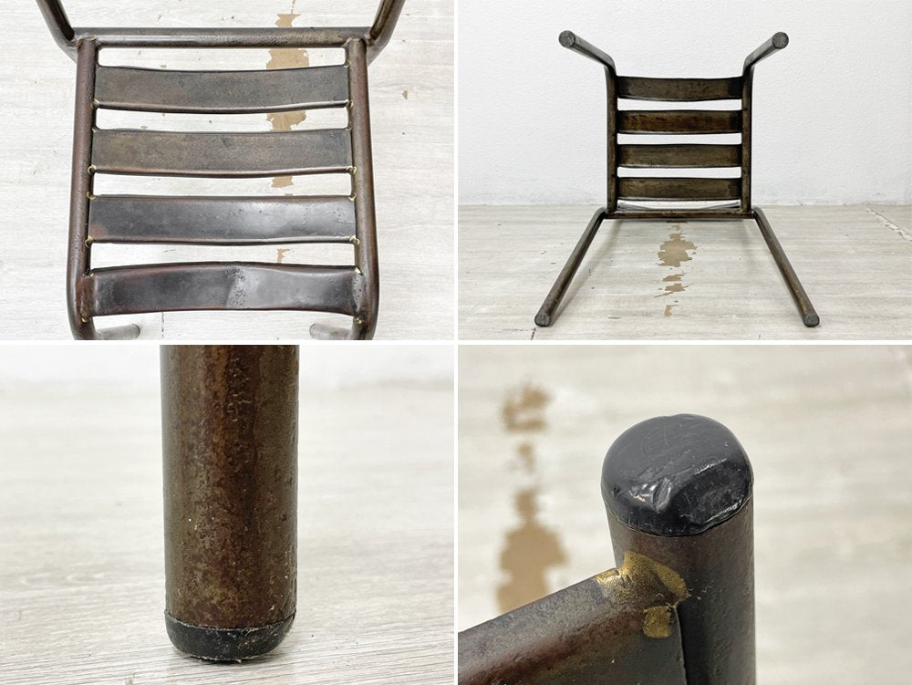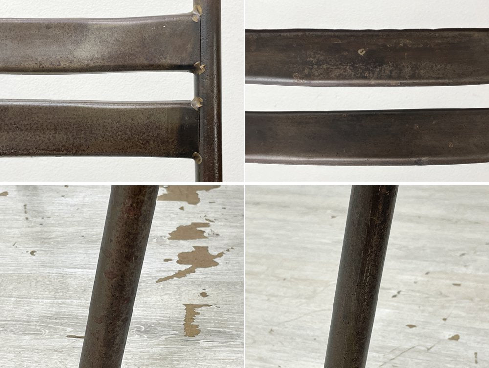 こちらはビンテージのお品物です。経年・使用に伴い擦れや傷、金属特有のくすみや黒ずみ、錆びなどが見受けられます。またフレームに僅かな歪みが生じている他、椅子を振るとパイプ内部からカラカラと音がしますが、ご使用に問題となるような不具合はございません。