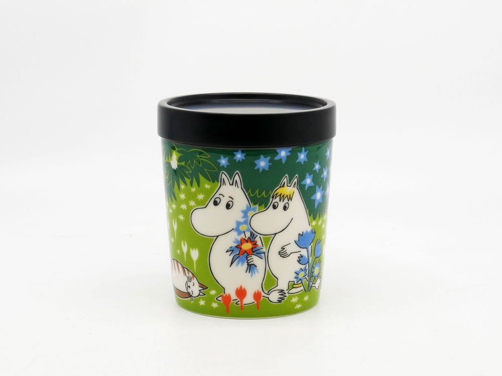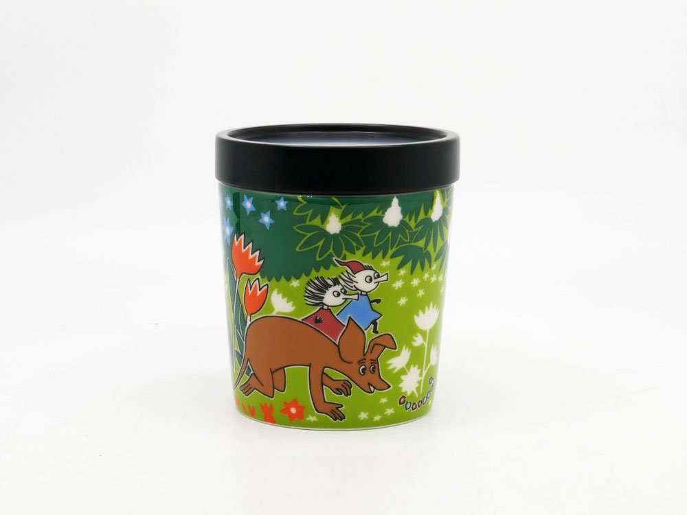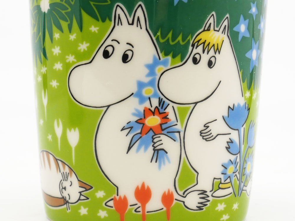 グリーンをベースにカラフルに散りばめられた花やキャラクターのカラーが美しく、コレクションとしてはもちろん、日常使いにもオススメのムーミンマグです。