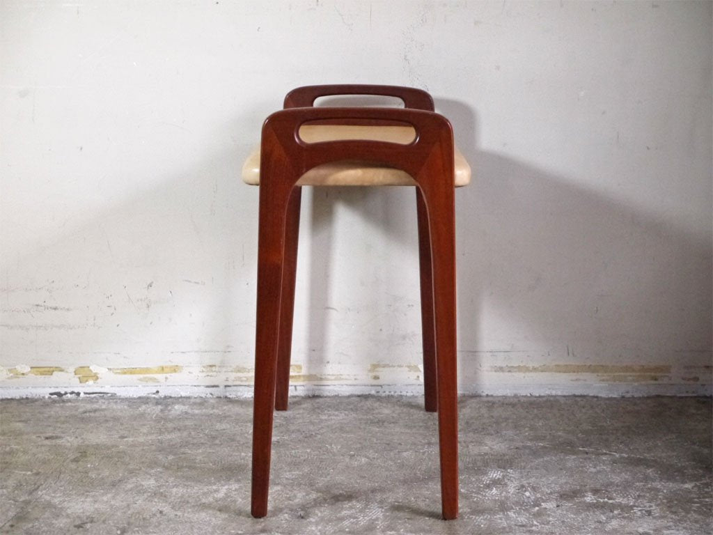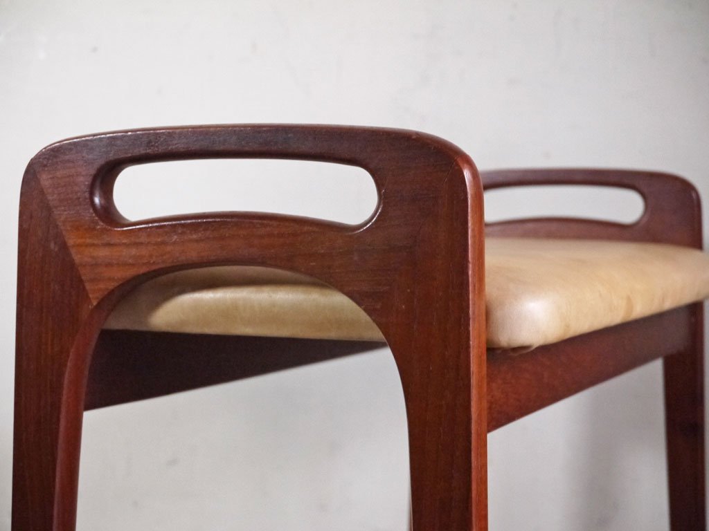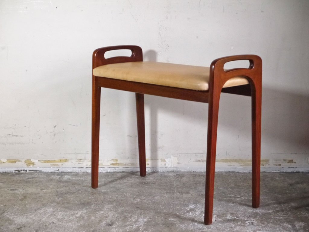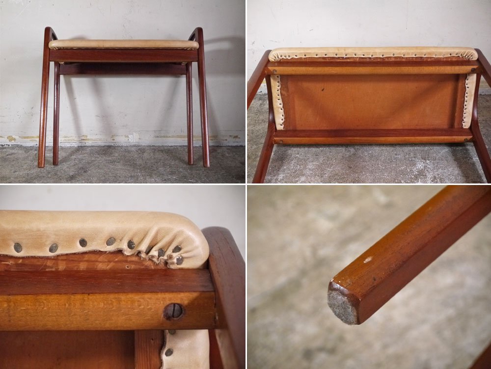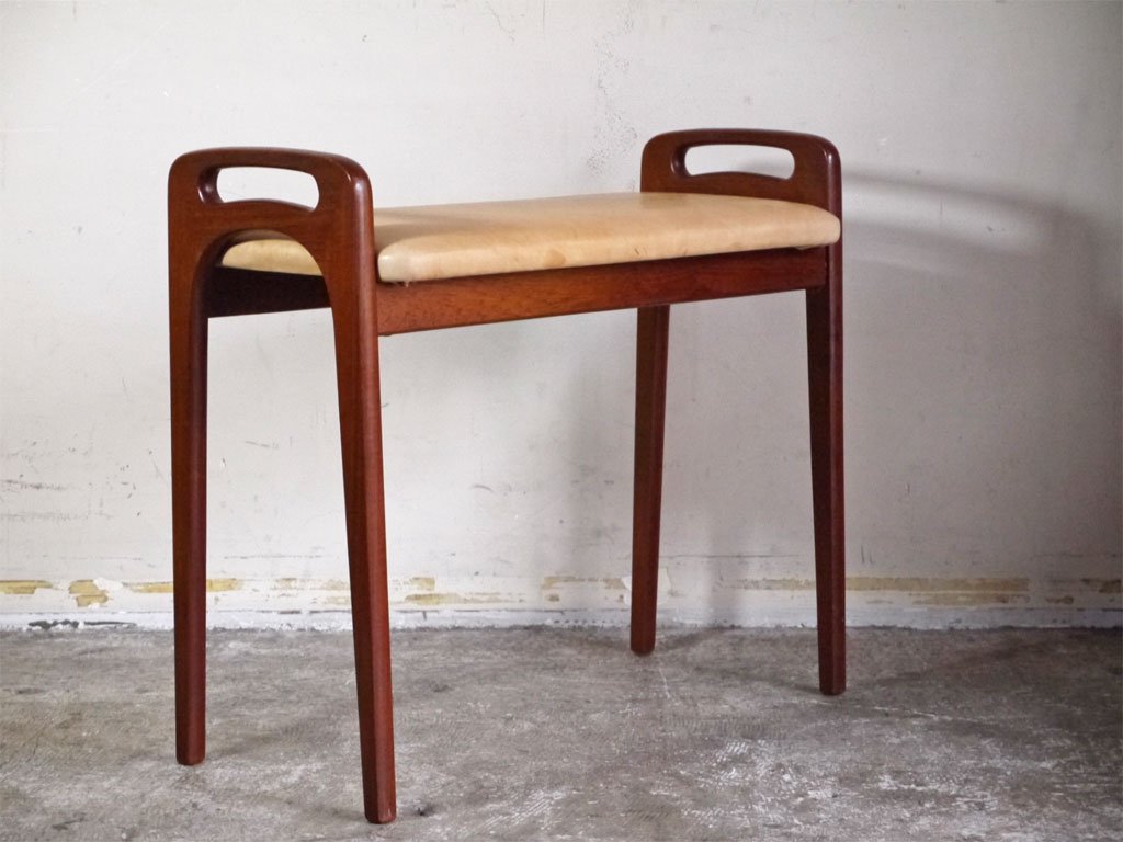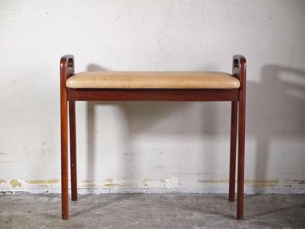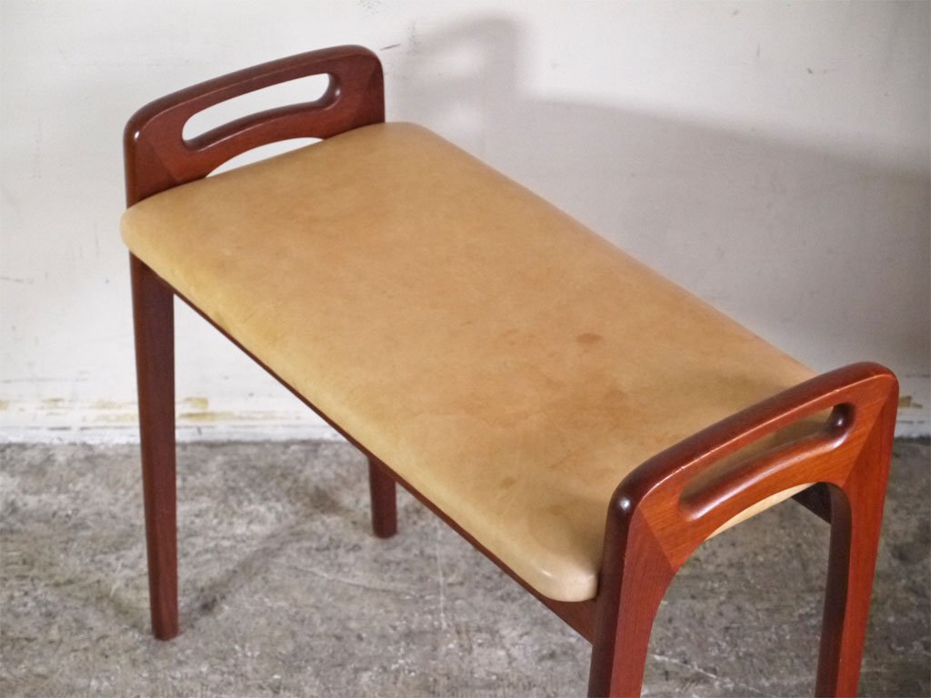 北欧ビンテージ Scandinavian Vintage チーク材 ヌメ革 ピアノベンチ スツール 北欧家具 ■
