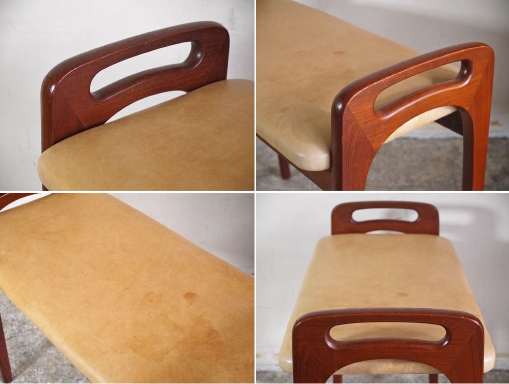 北欧ビンテージ チーク材 ヌメ革 ピアノベンチ