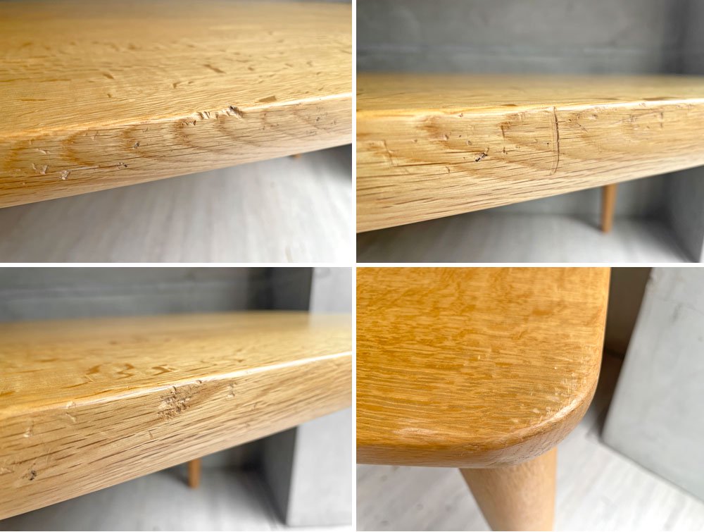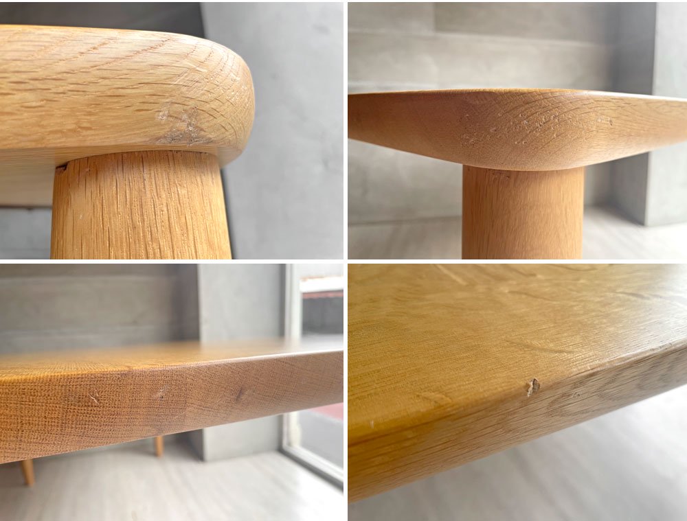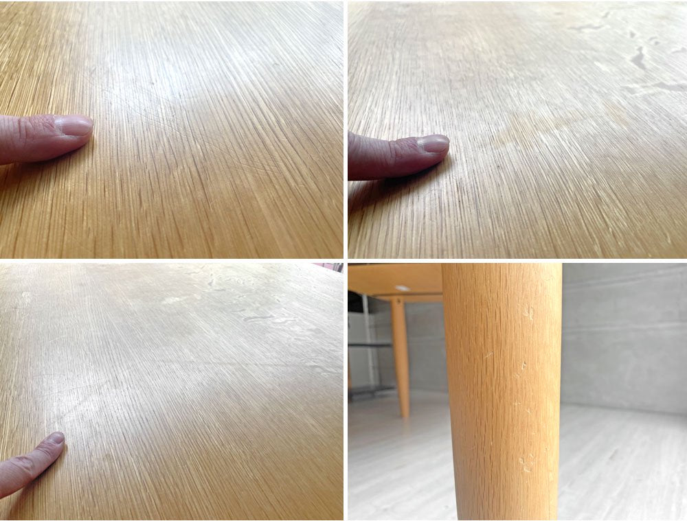 天板の縁や脚部にやや目立つ打痕が散見されます。そのほか、天板表面に擦り傷や線傷がございます。