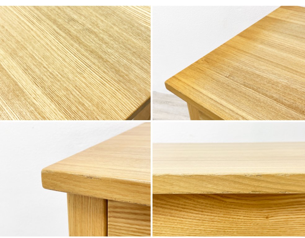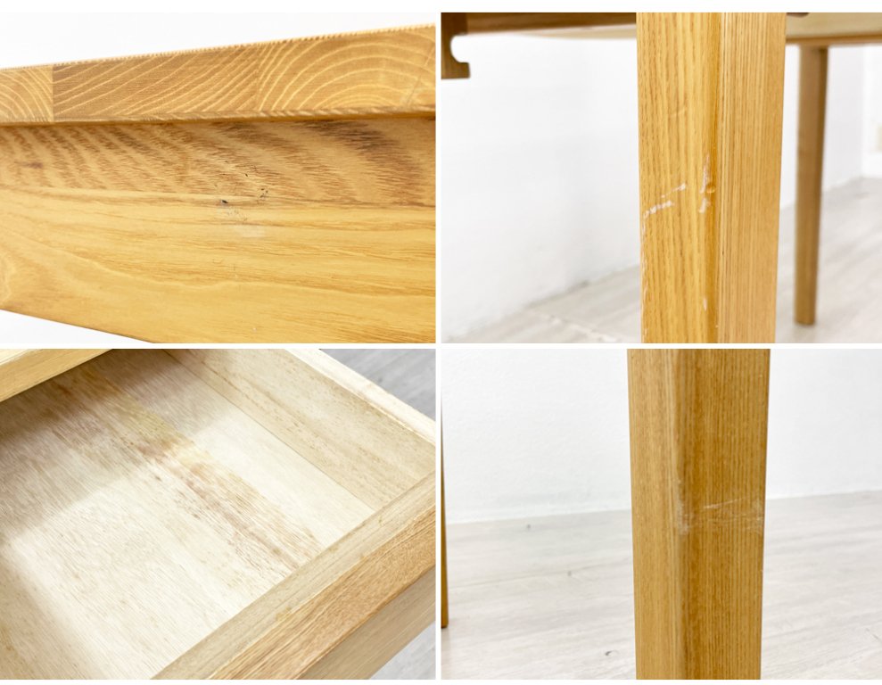 使用に伴う擦れや傷、打痕、天板の日焼けなどがございますが、美観を大きく損ねるような汚れや、機能を損なうようなダメージは特にございません。