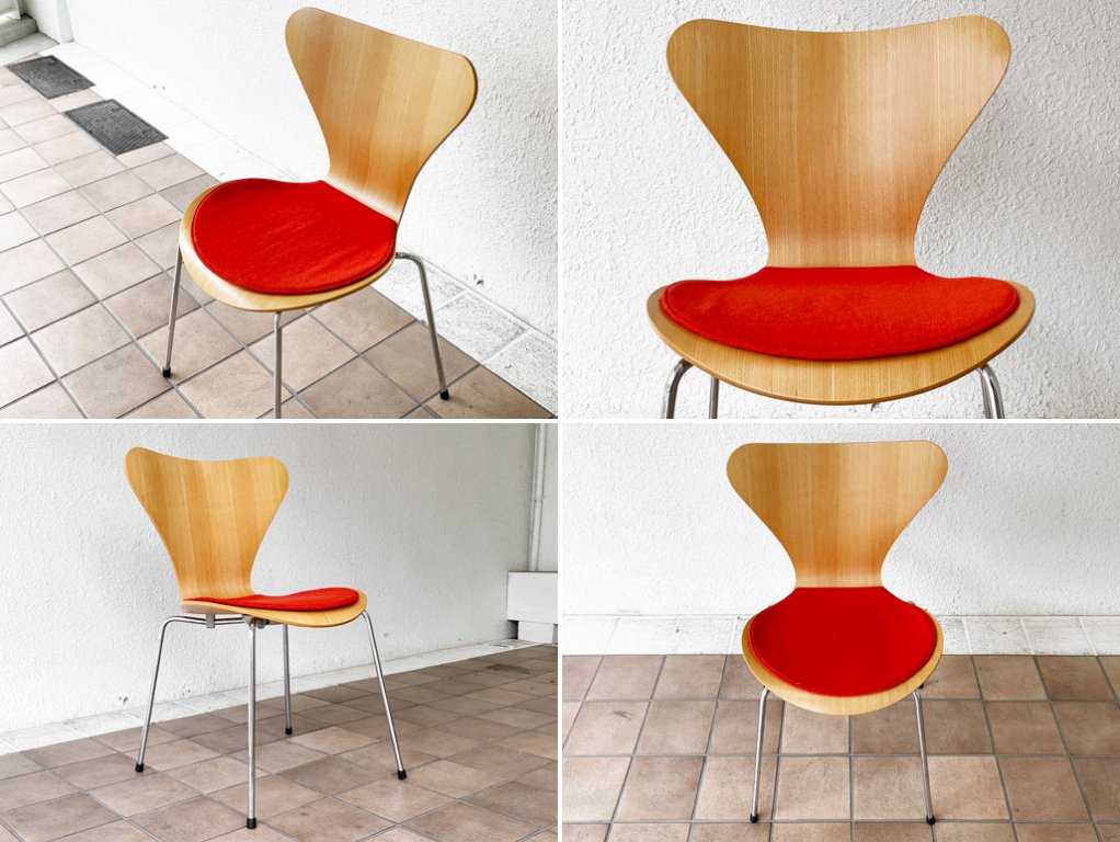 フリッツハンセン Fritz Hansen セブンチェア アルネヤコブセン ナチュラル ビーチ材 ベントハンセンモブラー シートパッド付き 北欧家具 ◇