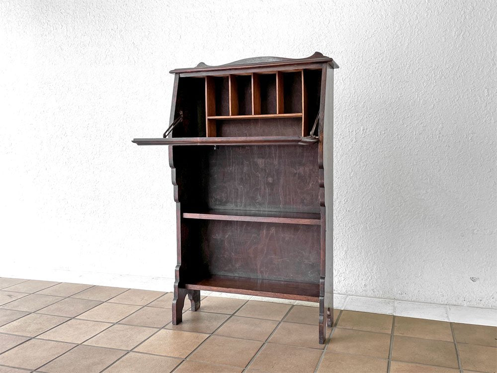 UKビンテージ vintage ライティングビューロー 書斎机 デスク ブックケース シェルフ オーク材 英国 ◇