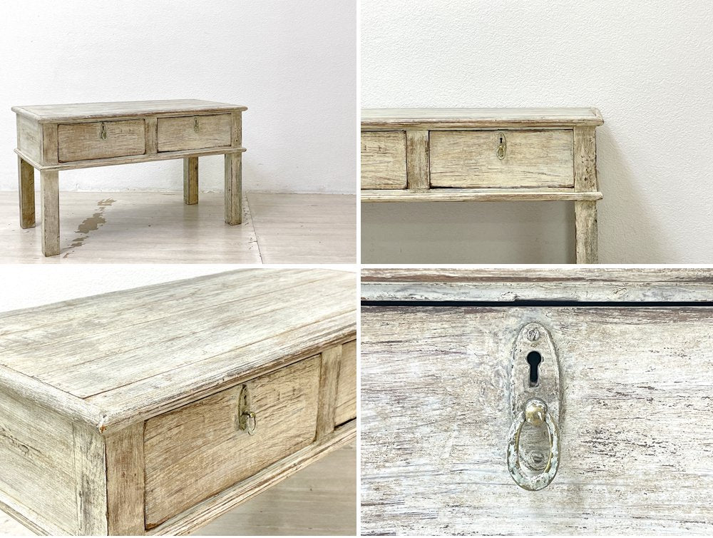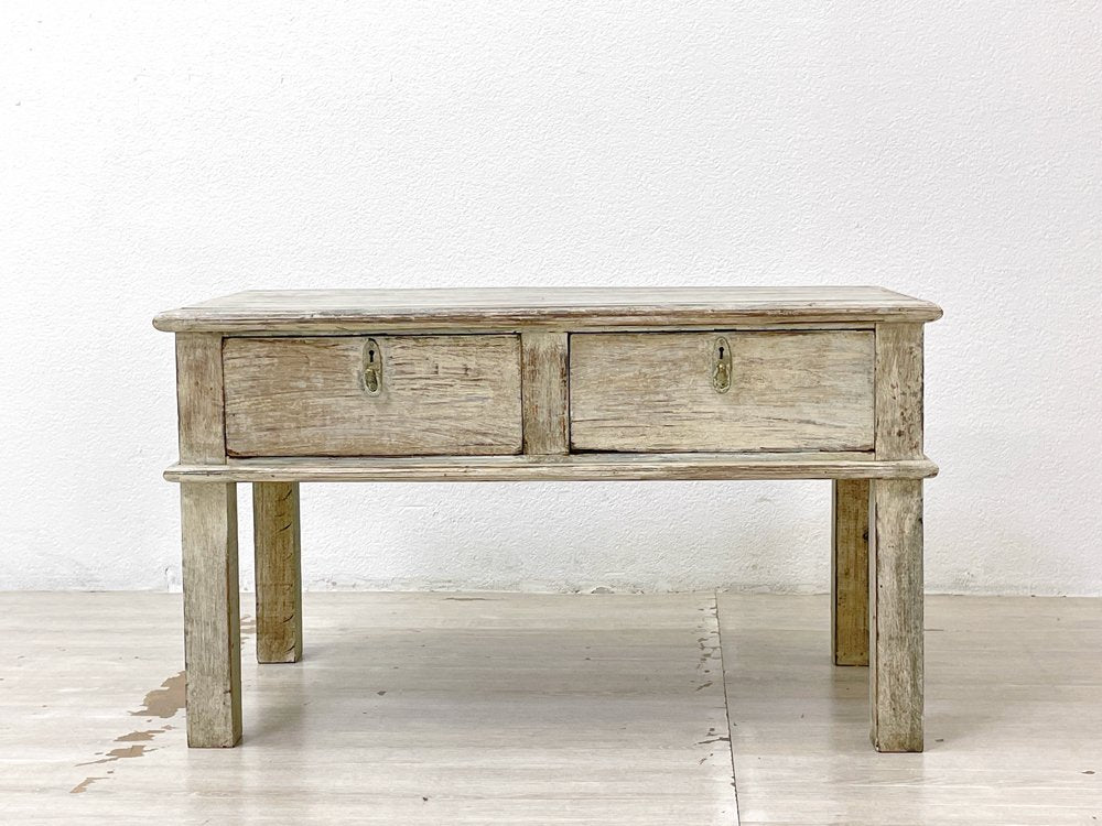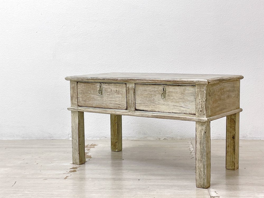 ビンテージスタイル Vintage Style ホワイトペイント ローテーブル W76cm 古材 シャビーシック ●