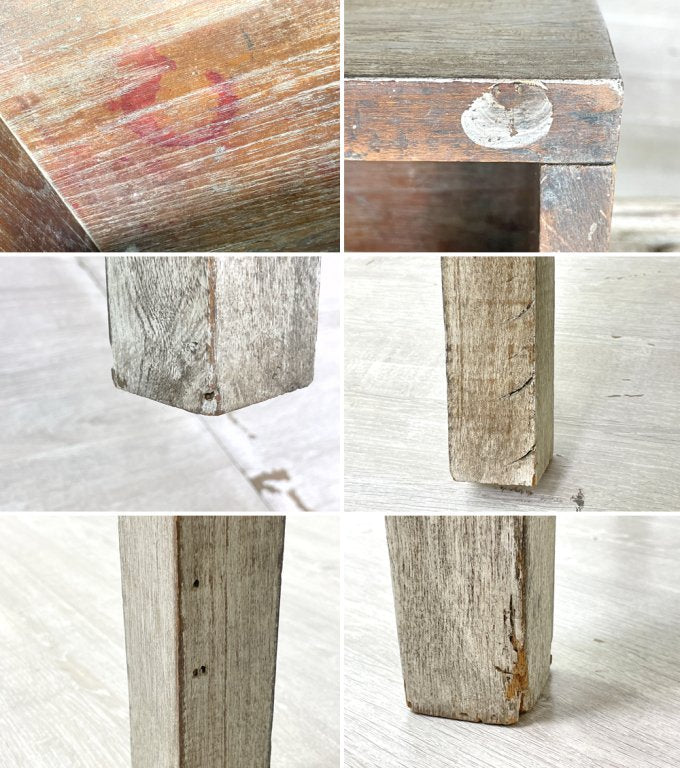 使用に伴う擦れや小傷、古材特有のダメージ感や染み、ペイントロスなど、全体的にビンテージの風合いが感じられるコンディションとなっております。機能を損なうような大きなダメージなどは特にございません。