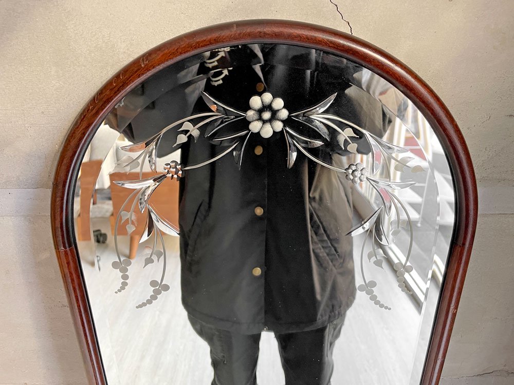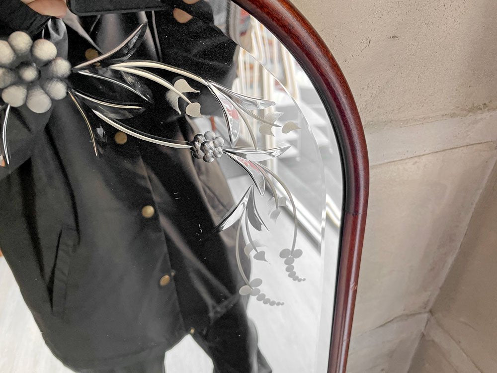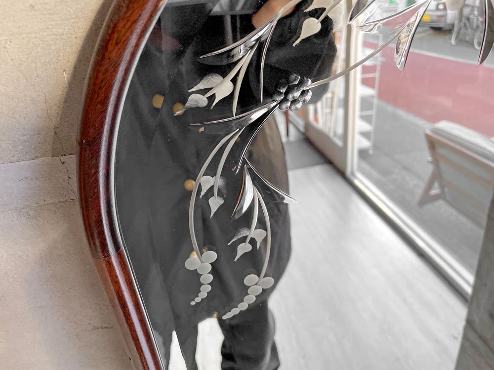 丸みを帯びたフレームやエッジングで草花が描かれた装飾が上品で落ち着いた雰囲気を醸し出しています。