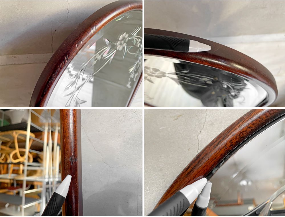 こちらは、重厚なマホガニー材とローズウッド材をフレームに使用したウォールミラー。