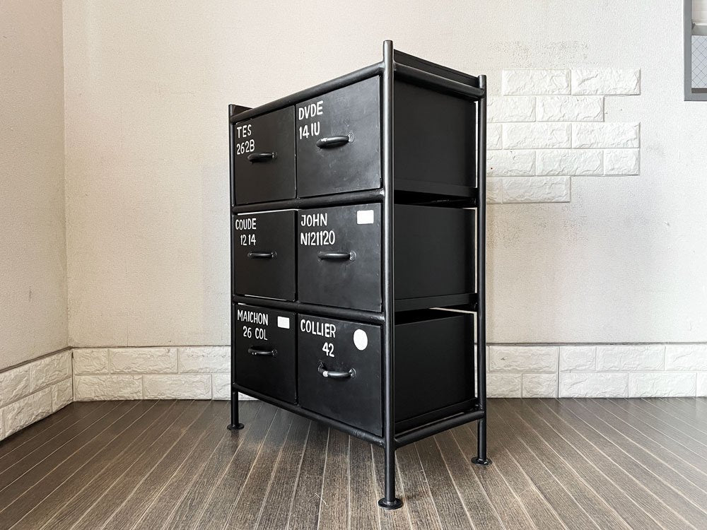 イエノワ ienowa MSG スチールチェスト 6ドロワー ブラック W56cm インダストリアル 定価¥40,800- ◎