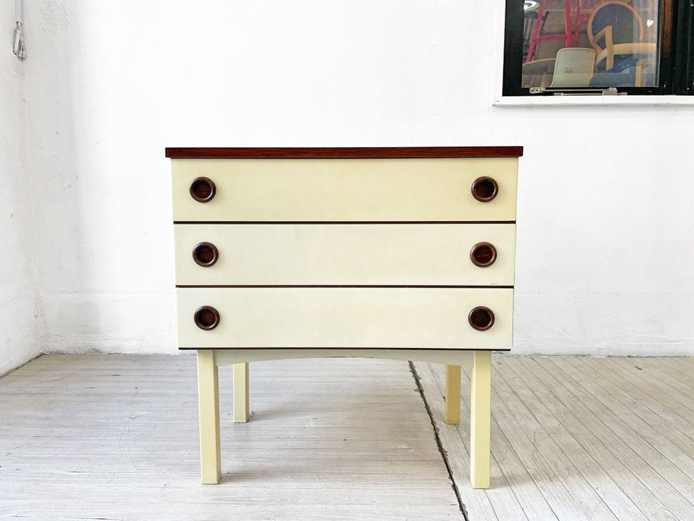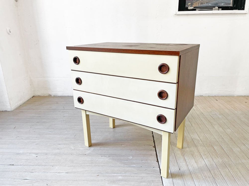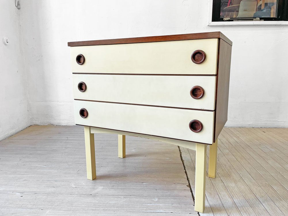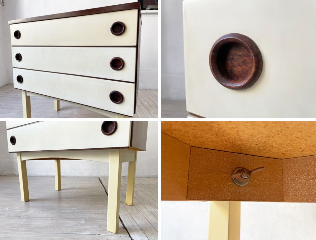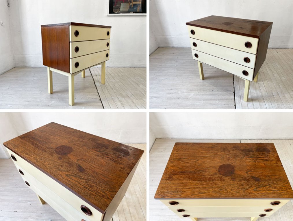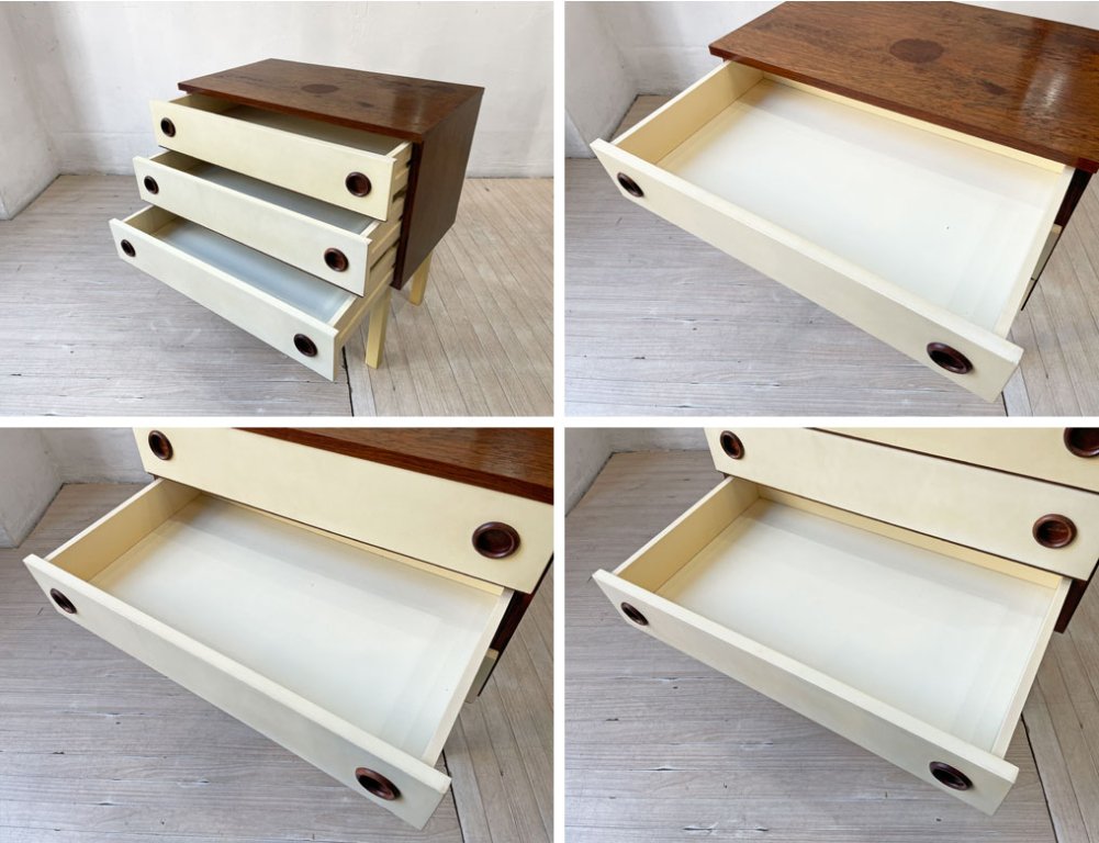 オランダ ビンテージ Dutch Vintage ミニチェスト キャビネット 3ドロワー ローズウッド×メラミン Couscous Furniture購入品 ★