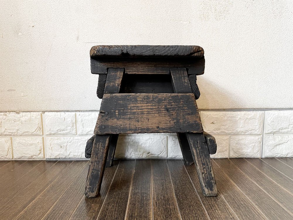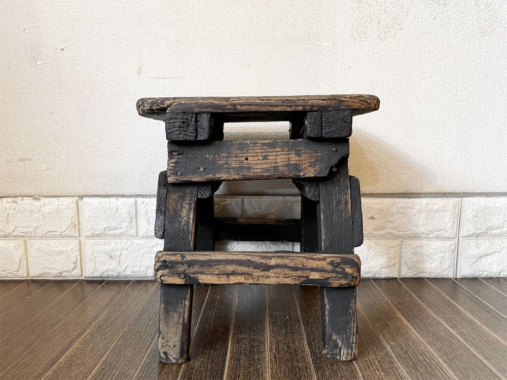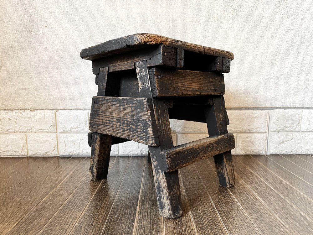 ジャパンビンテージ Japan Vintage 古い木味のスツール 踏み台 H31cm 古材 インダストリアル GALLERY.S 取扱 ◎