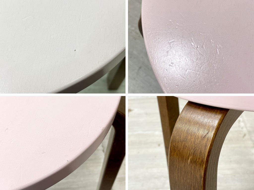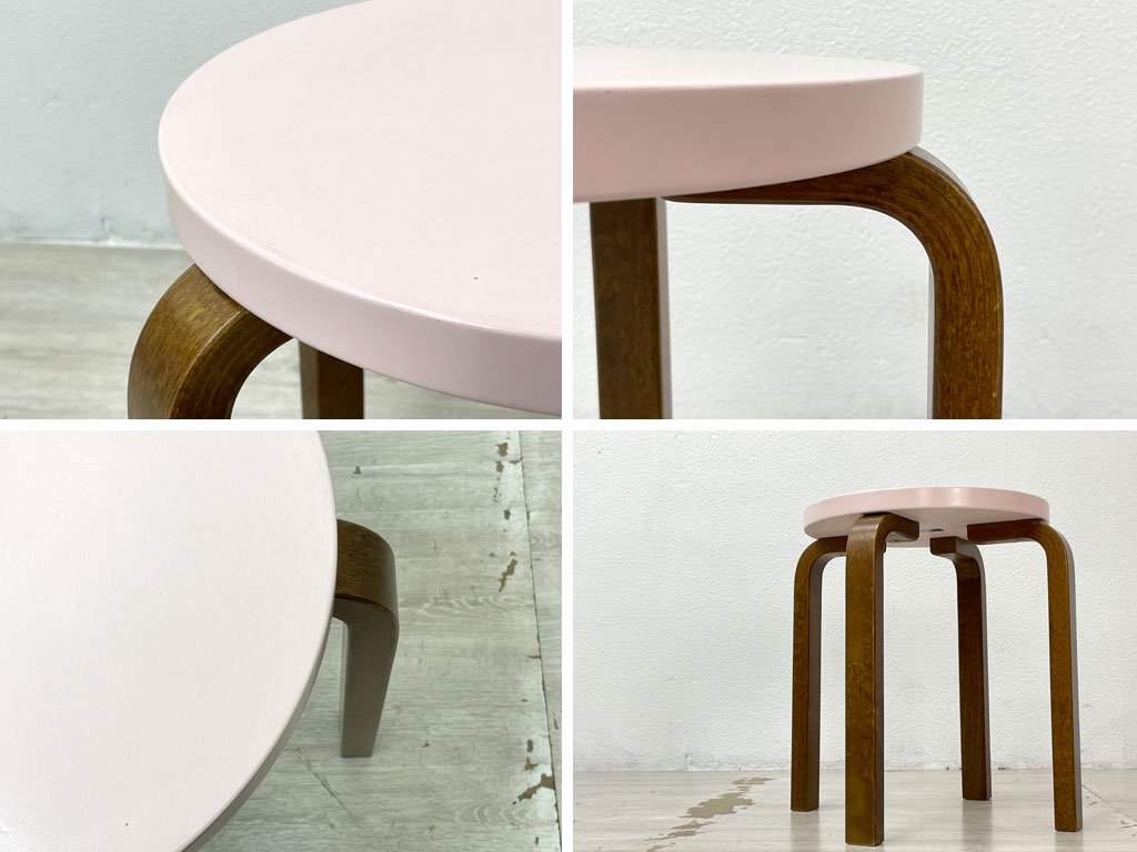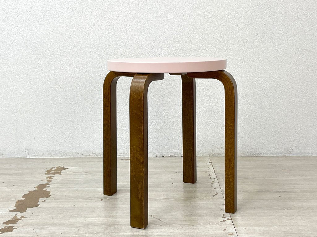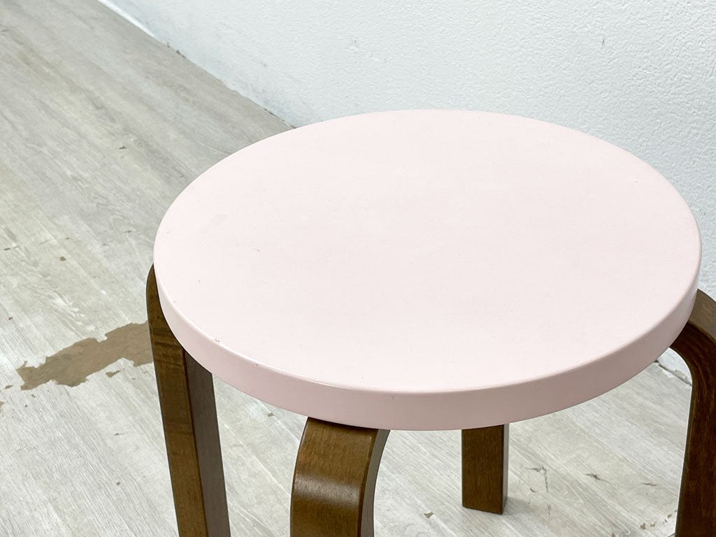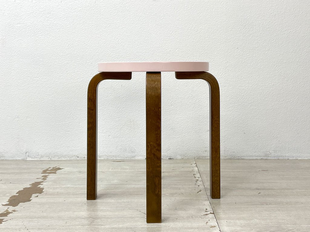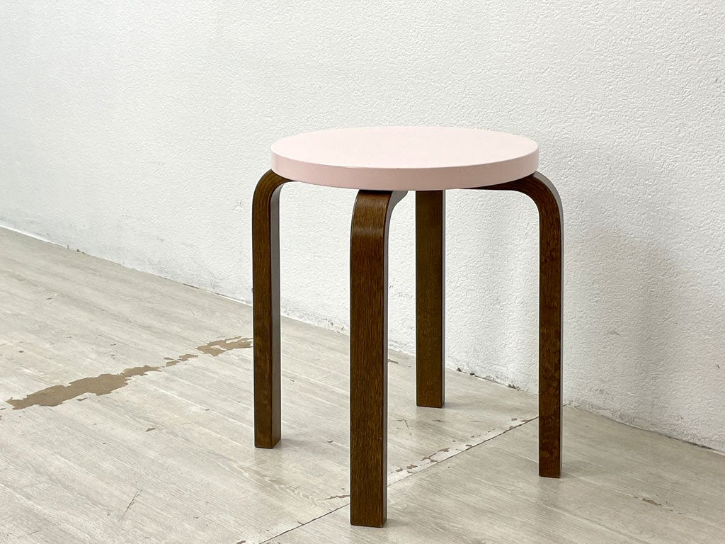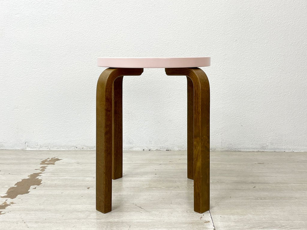 アルテック artek スツール E60 ヘラ・ヨンゲリウス コレクション ピンク x ウォールナット バーチ材 4本脚 アルヴァ・アアルト フィンランド 北欧家具 廃番 ●