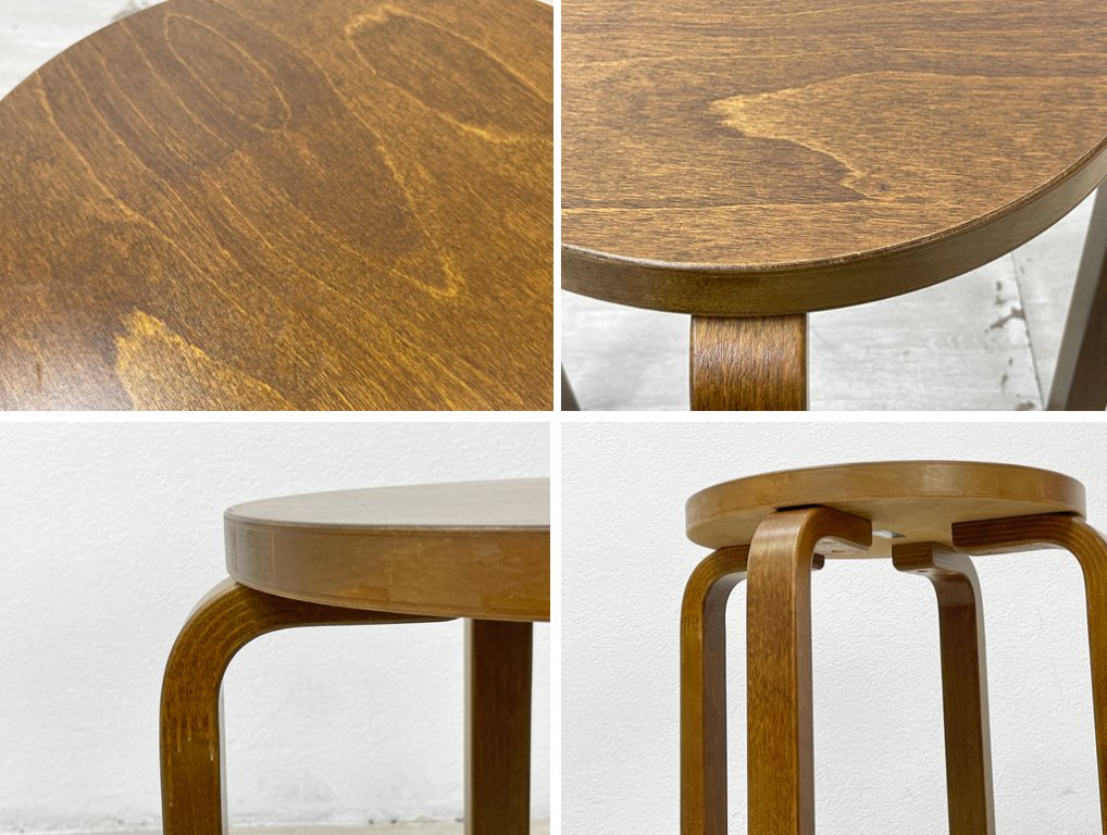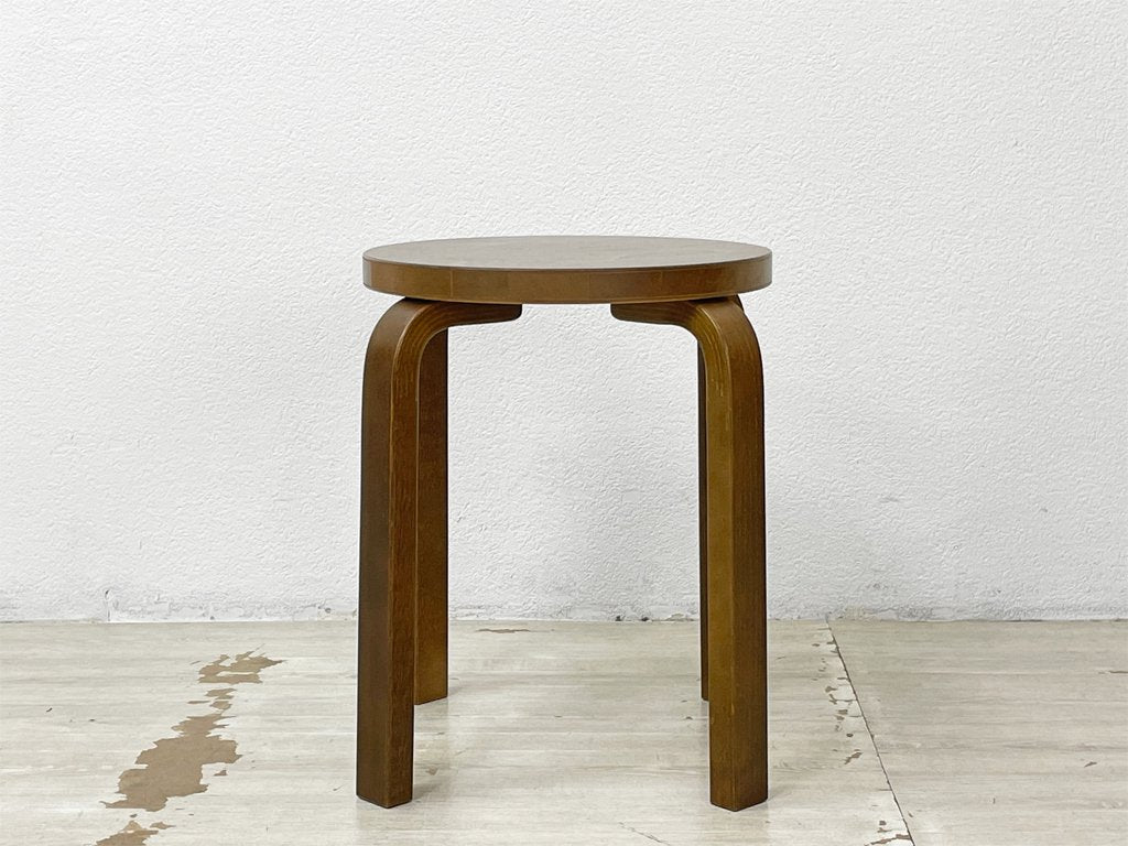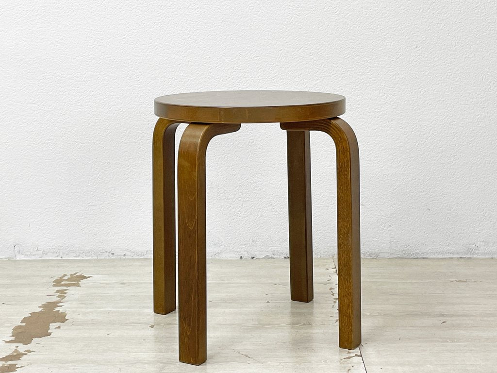 アルテック artek スツール E60 ヘラ・ヨンゲリウス コレクション ウォールナットステイン バーチ材 4本脚 アルヴァ・アアルト フィンランド 北欧家具 ●