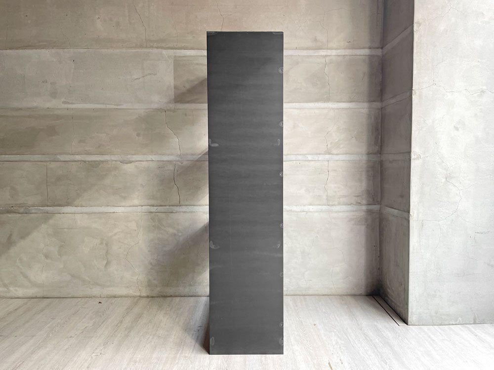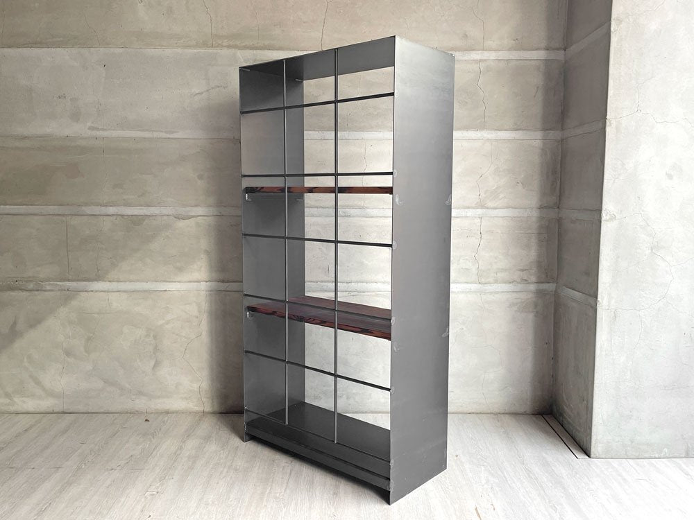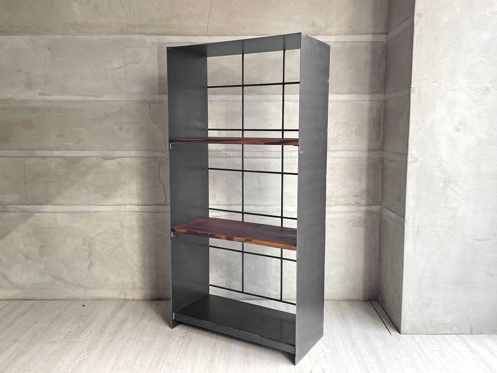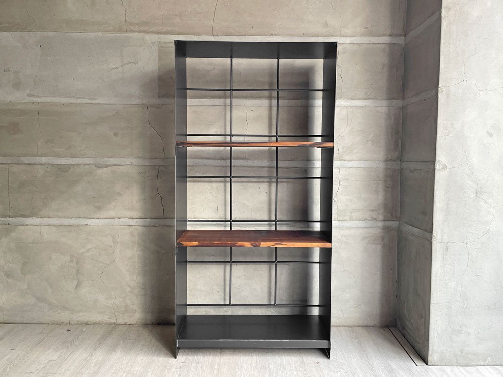 こちらは同社の代表的プロダクトのひとつ「 アイアンのブックシェルフ 黒皮仕上げ」。余計な装飾をなくし、異素材をミックスさせる事で素材の個性を際立たせたデザイン。