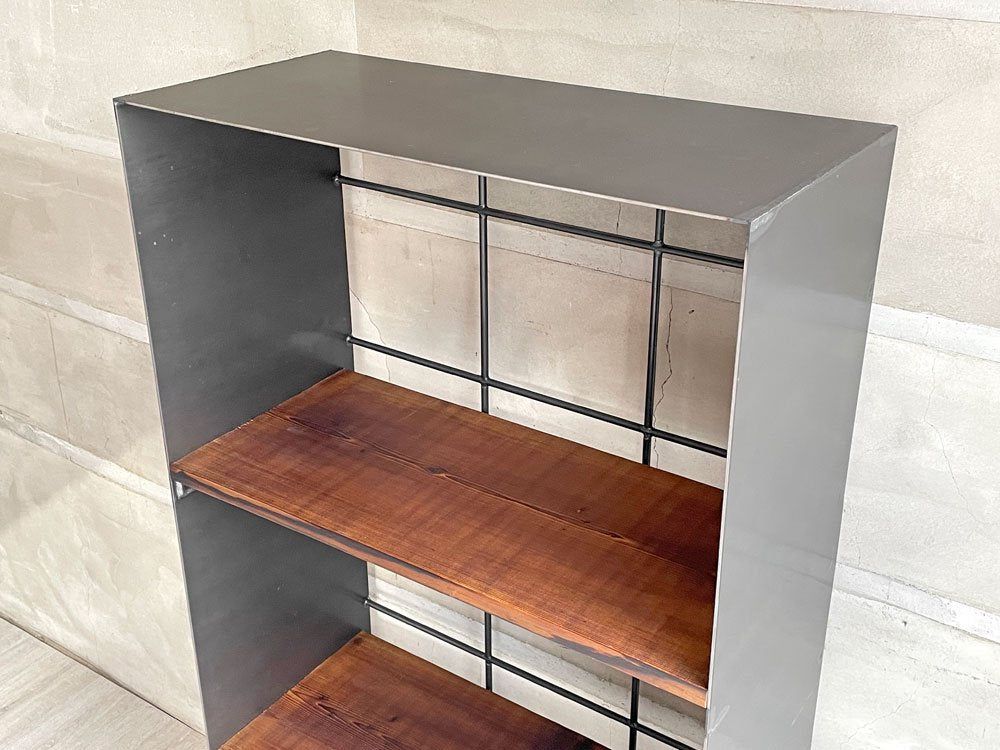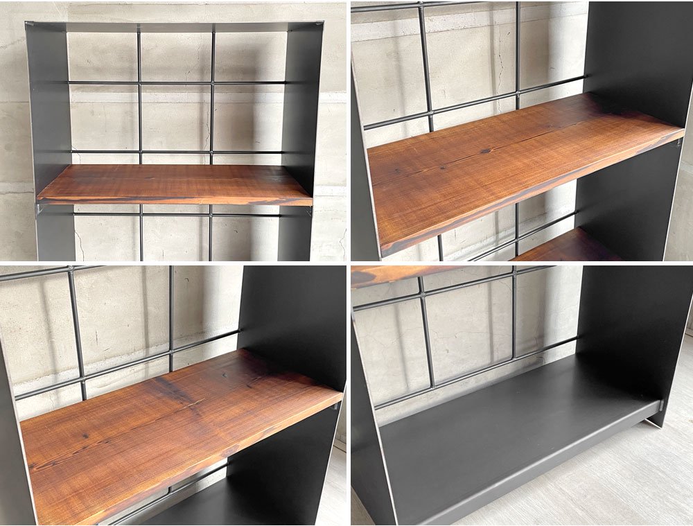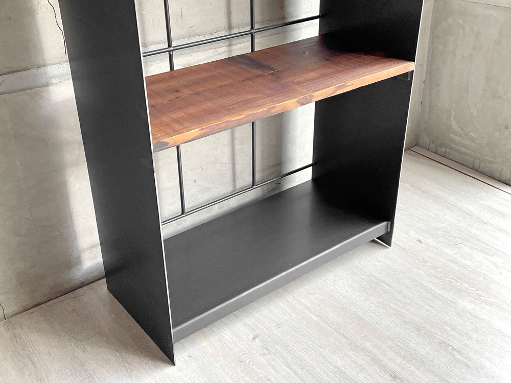 アール EARL アイアンのブックシェルフ 3段 黒皮仕上げ 天然木 黒皮鉄 オープンシェルフ 本棚 飾り棚 店舗什器 インダストリアル 工業系 定価¥57,300- ♪