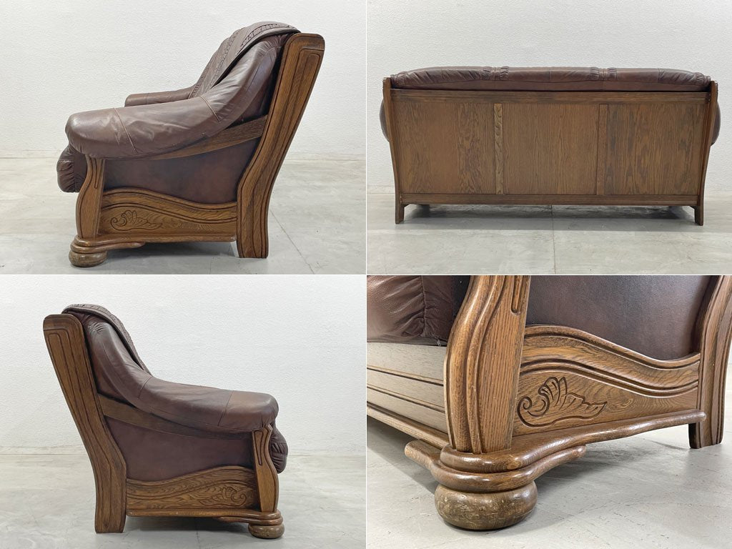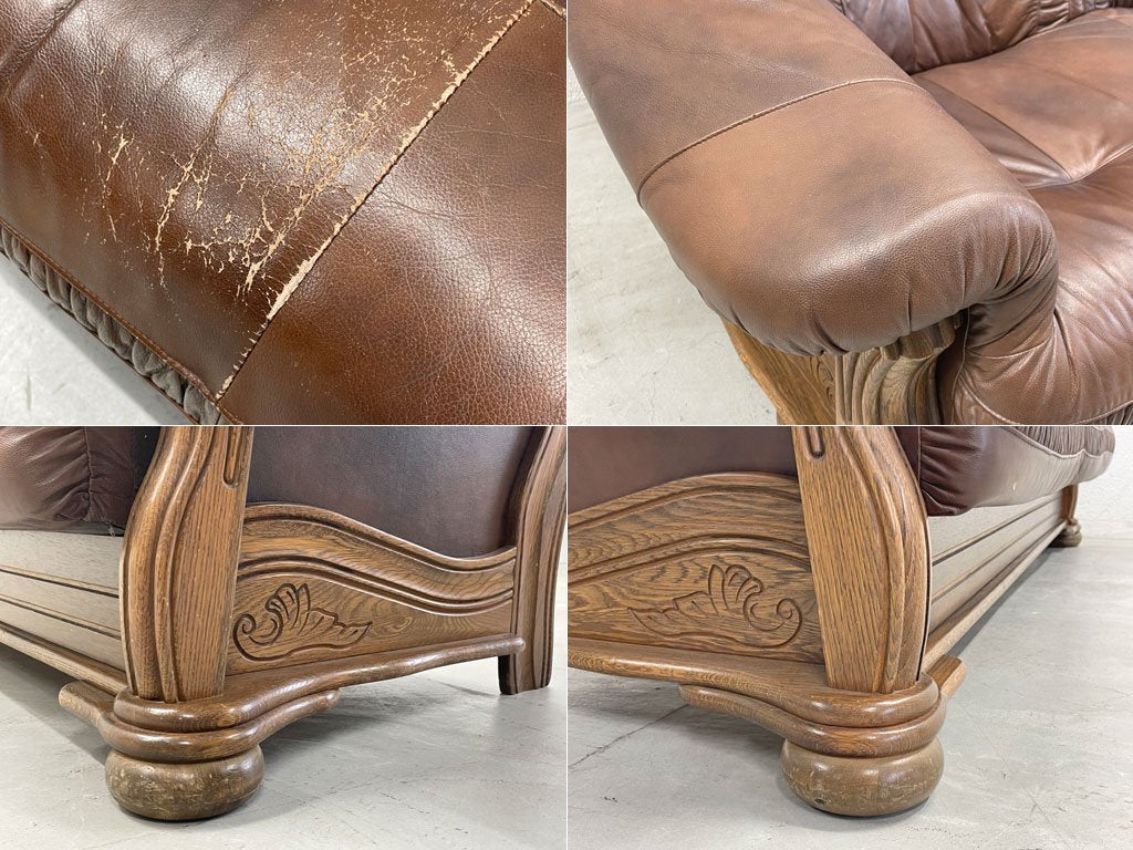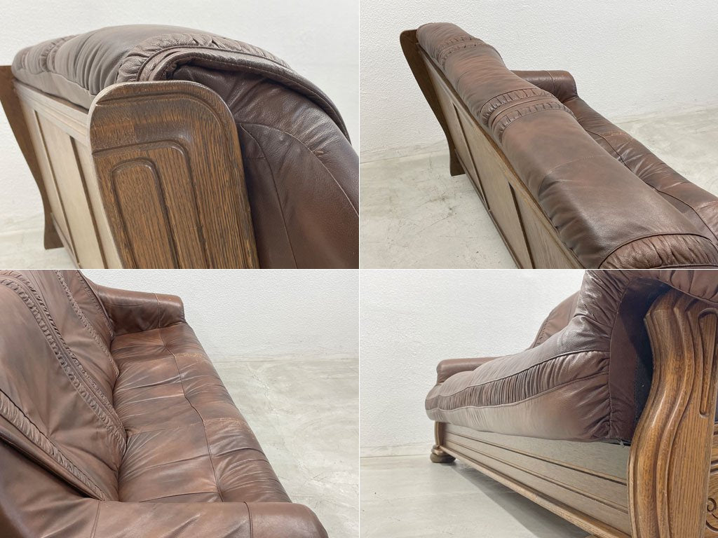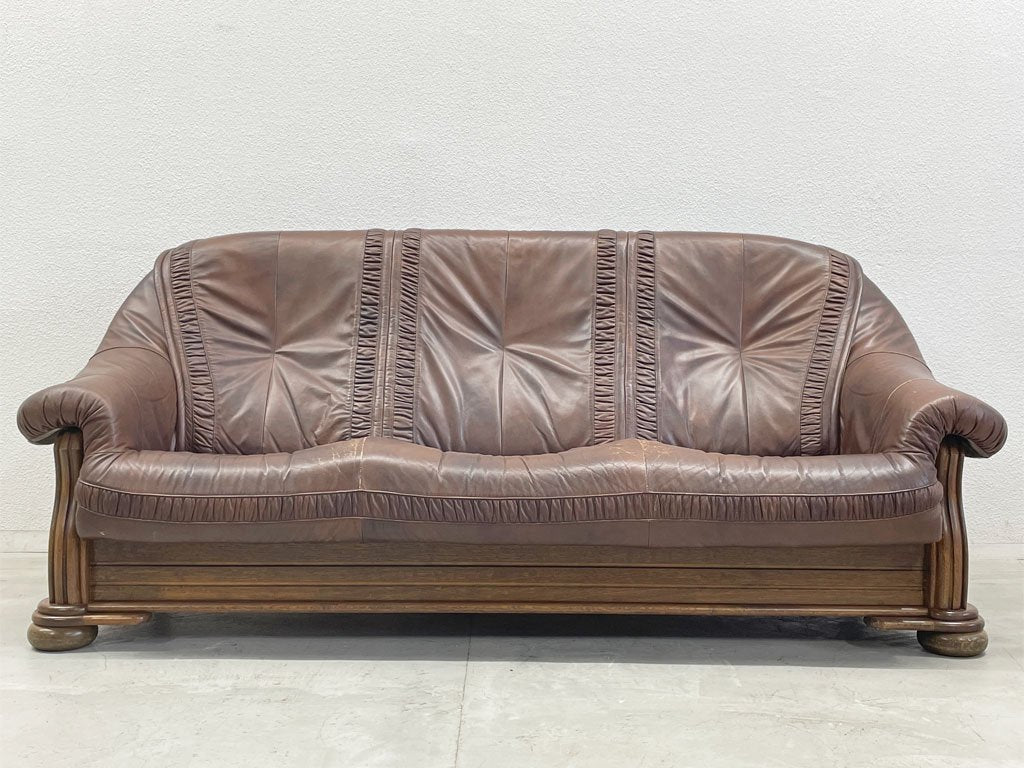 オランダ ダッチカントリースタイル Dutch country 3シーターソファ オーク材フレーム 本革 ブラウン