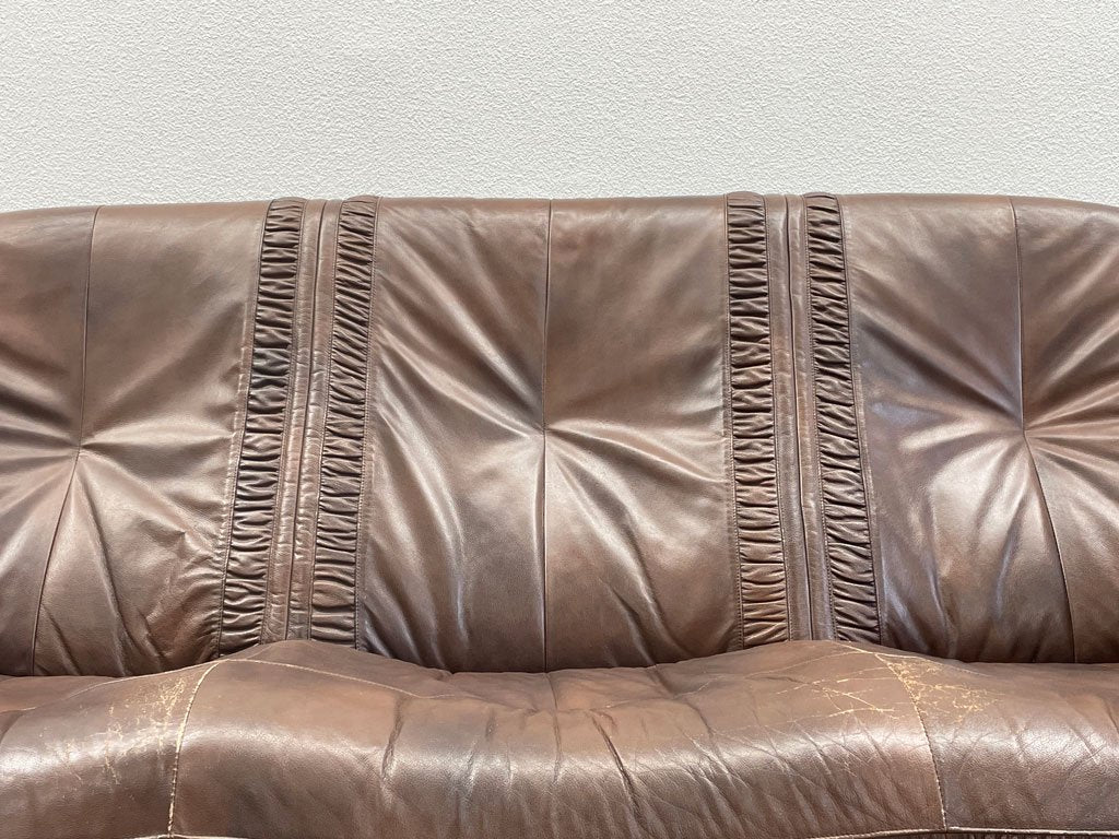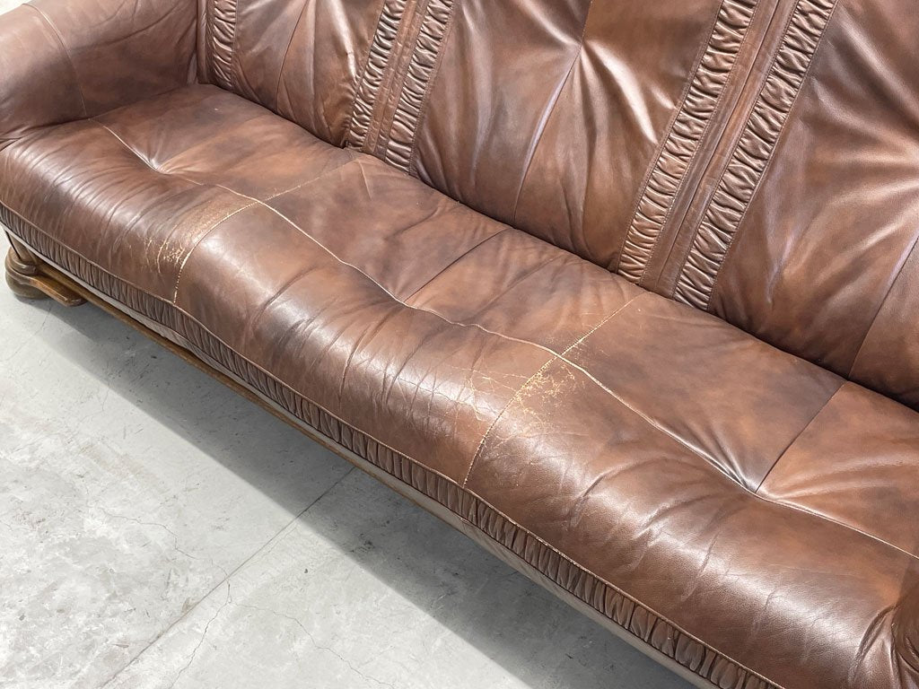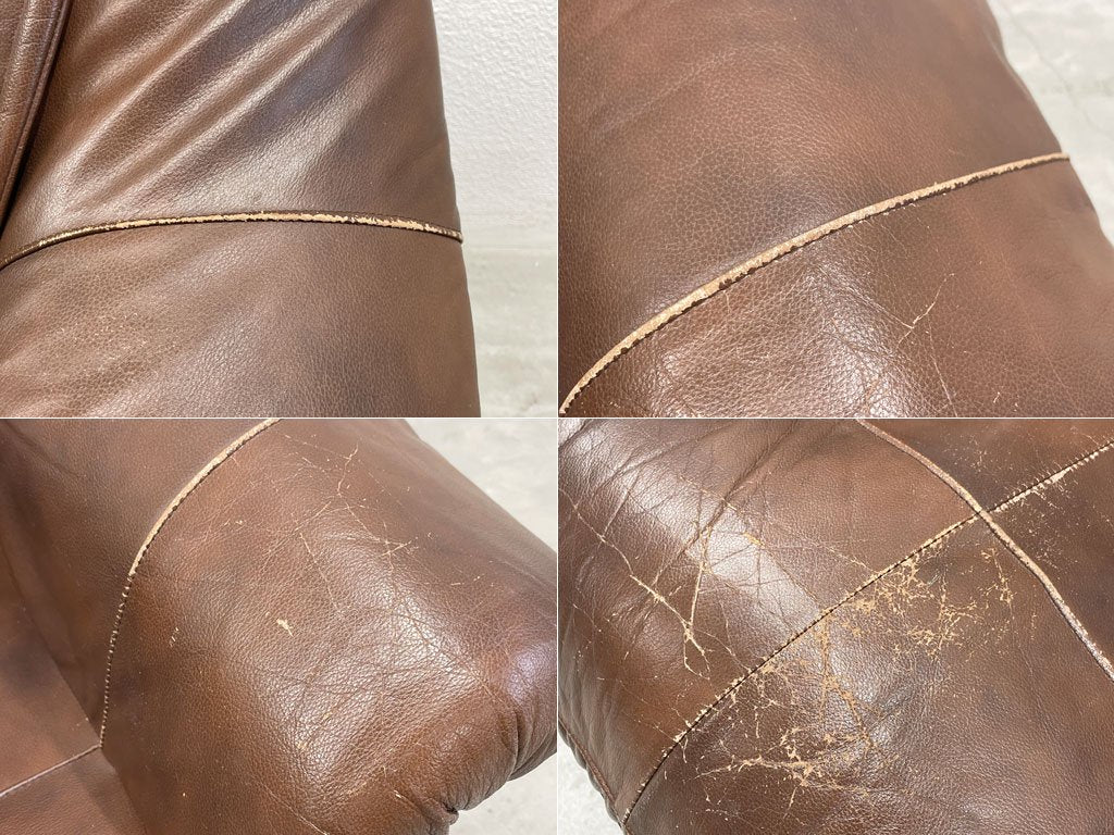 左アームとシートにはにはややスレなど細かなスクラッチ傷とレザーへのダメージがあり、レザーの表面にレザーの時が出ておりクラッキングのような表情になっています。