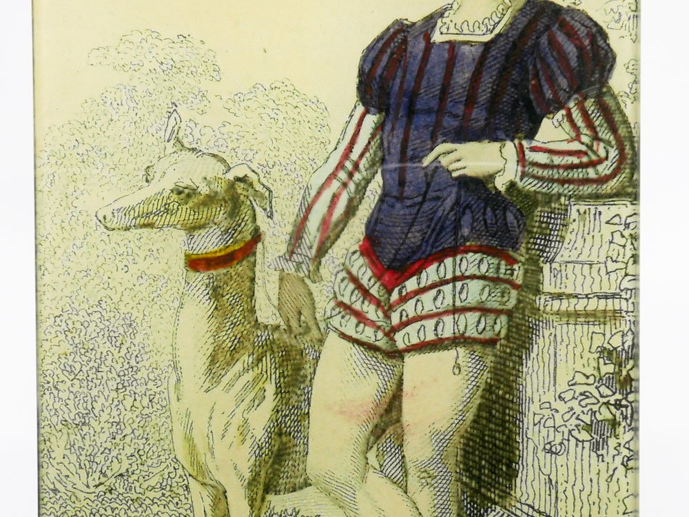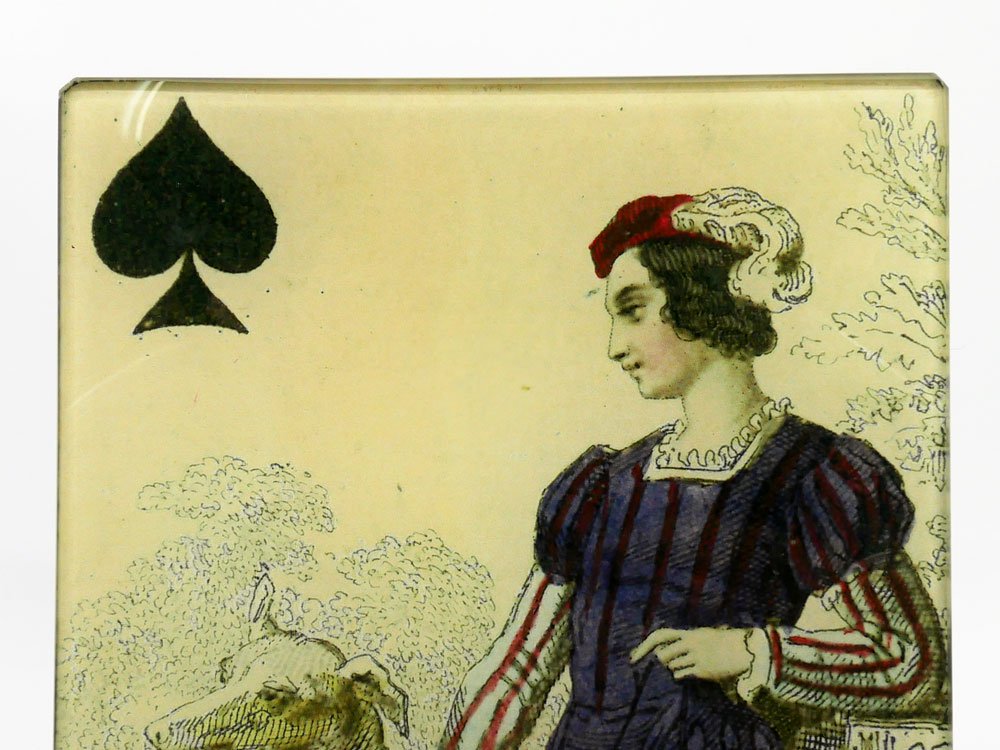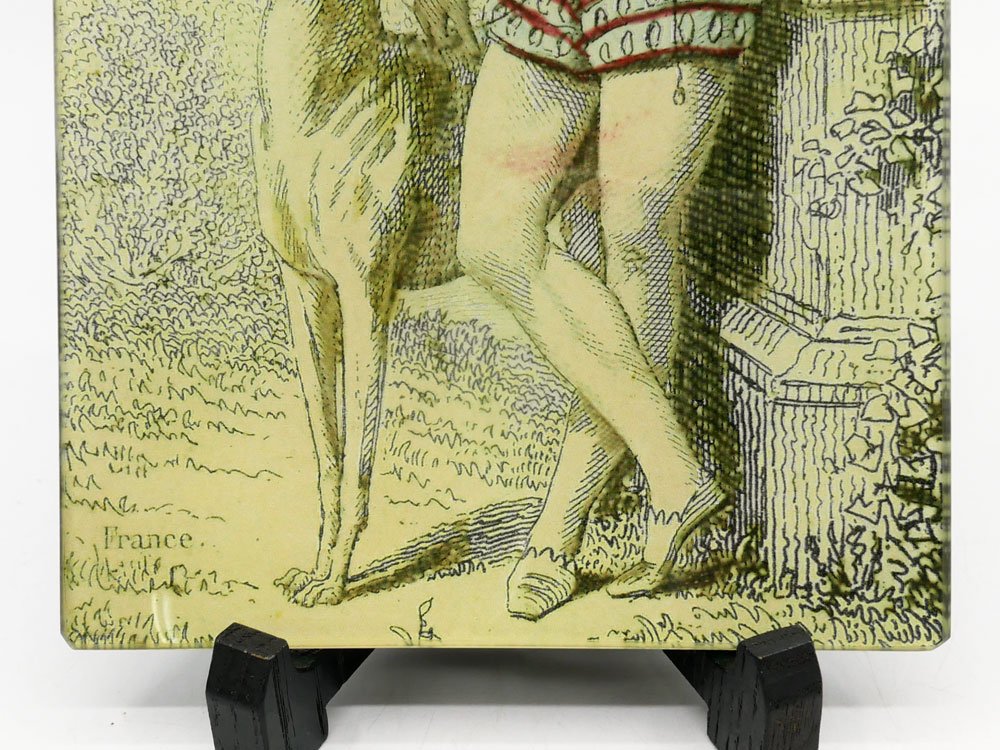こちらは、フランスの民族衣装を着た男性と動物が描かれたトランプのようなユニークな1枚。