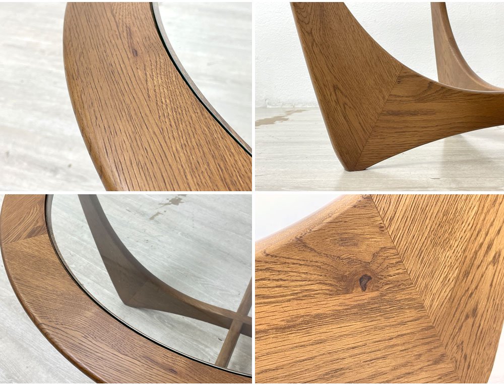 北欧ビンテージスタイル ガラスセンターテーブル ローテーブル ラウンド オーク材 Φ83.5cm ●