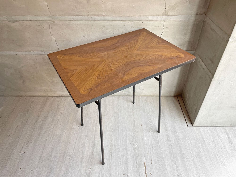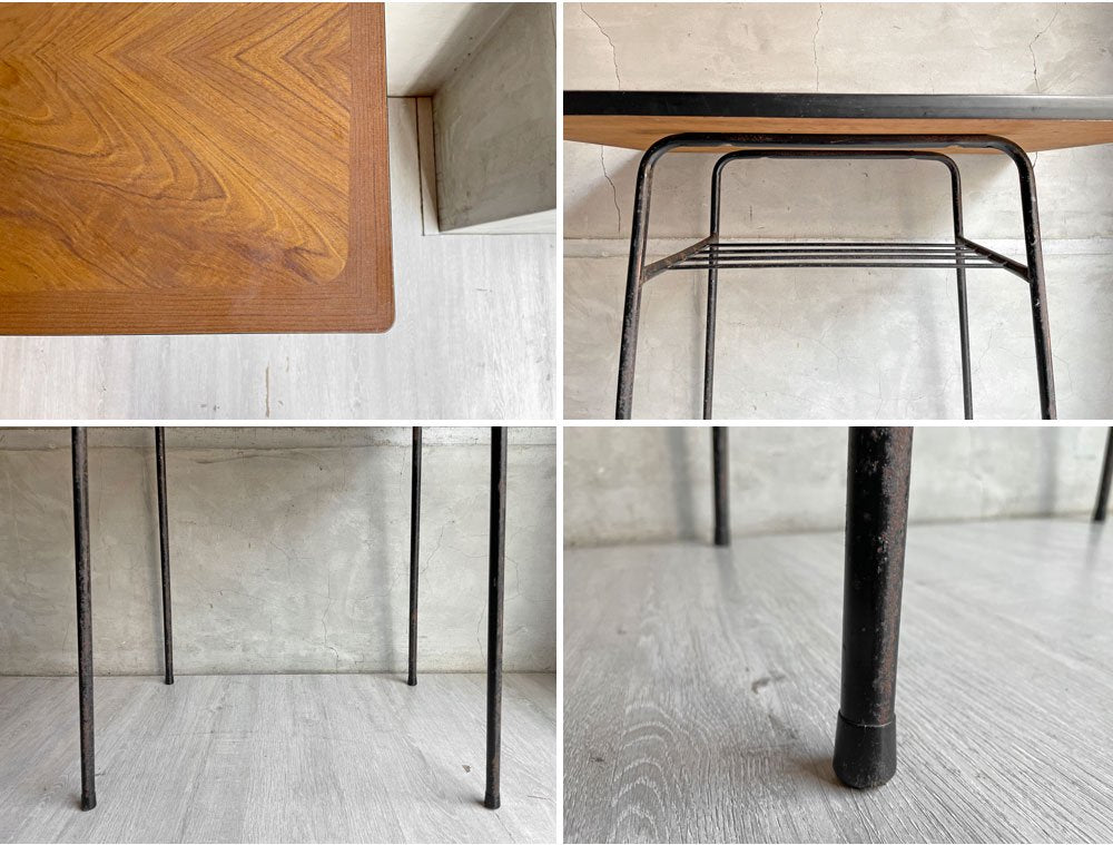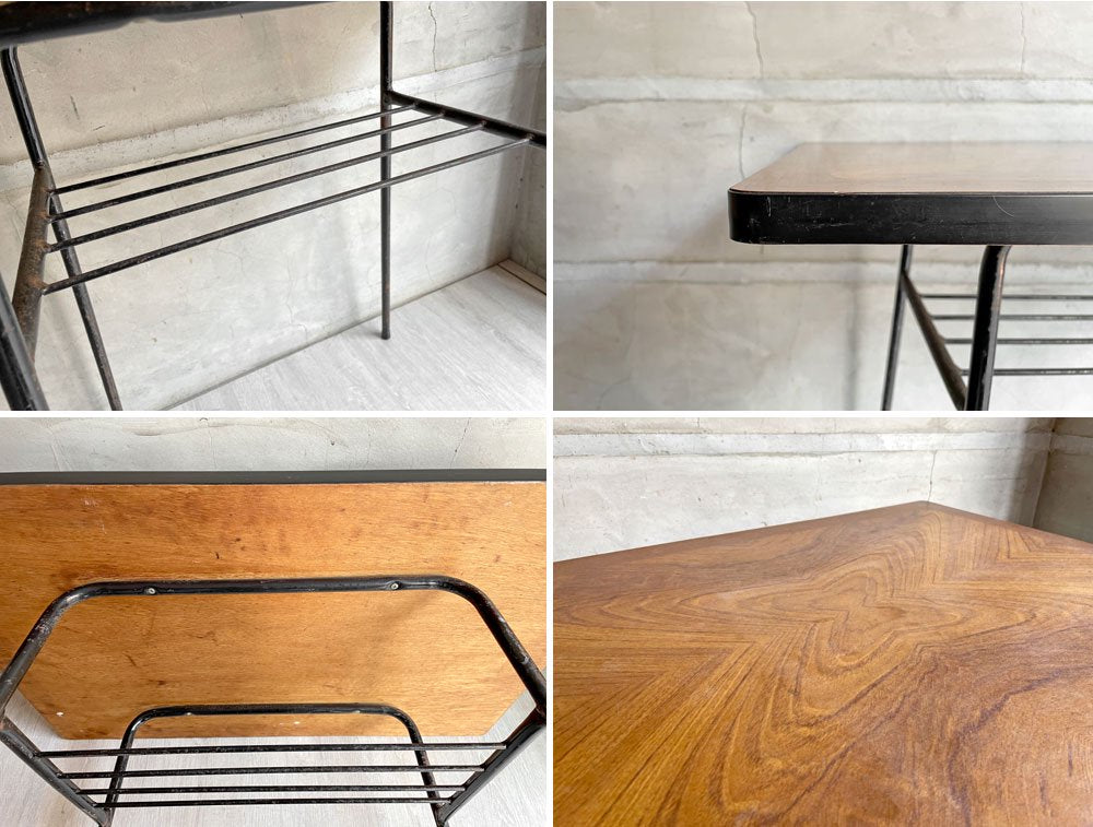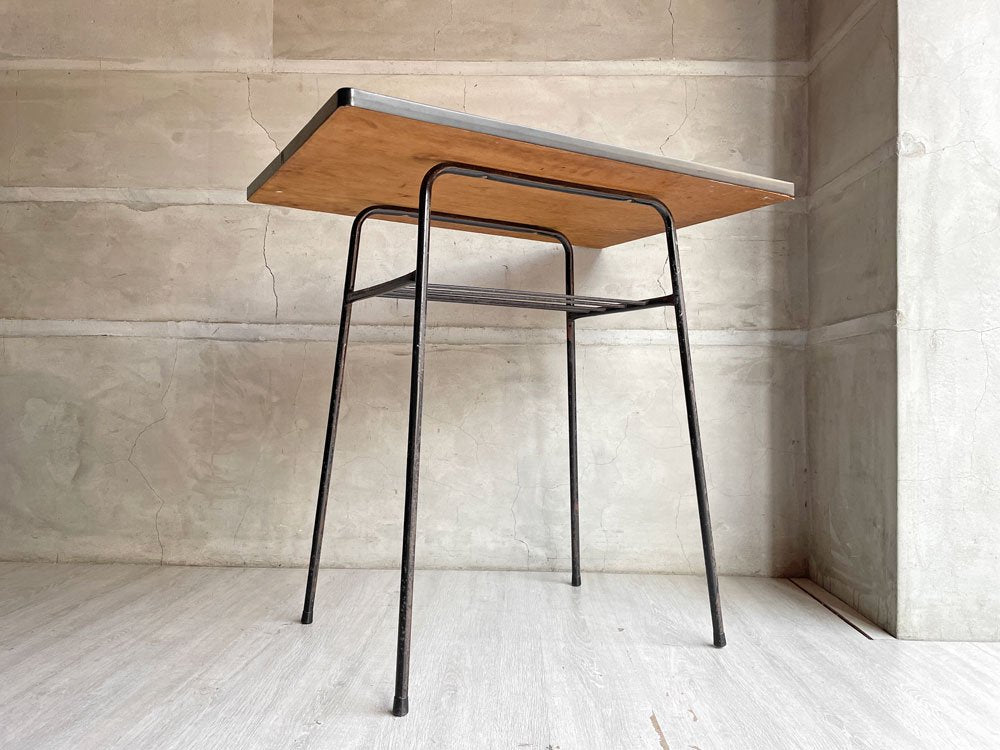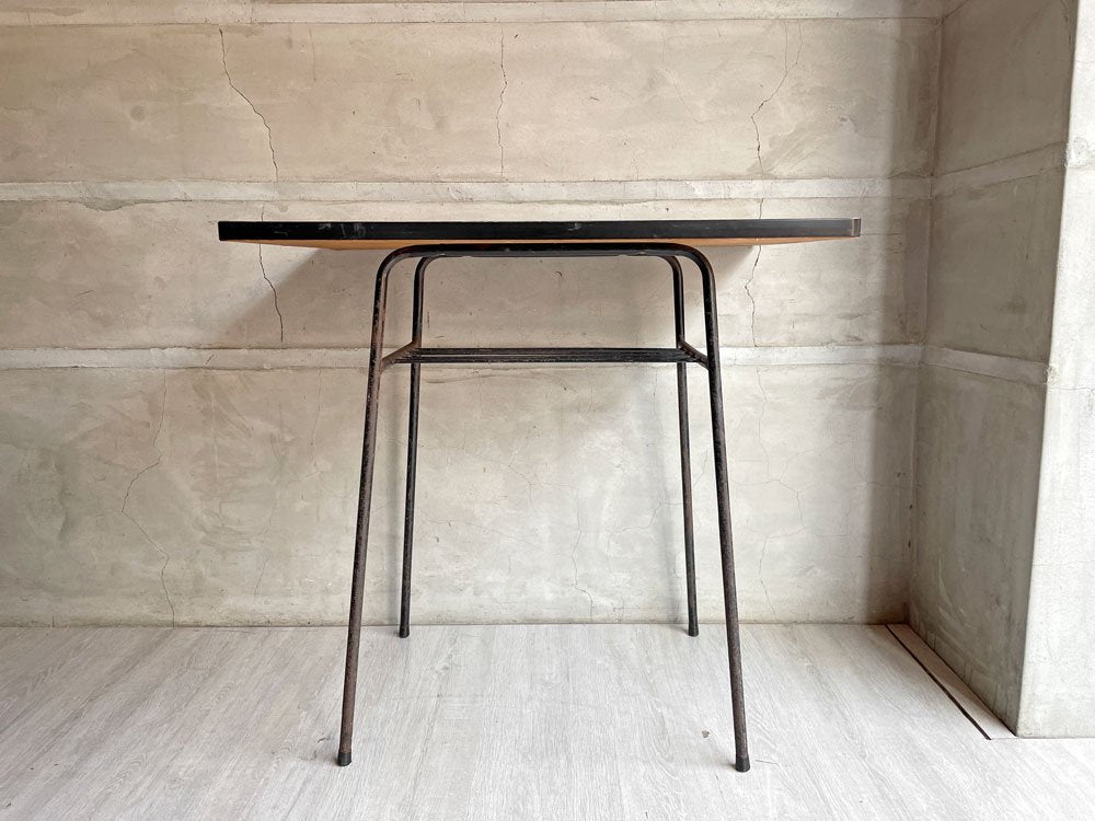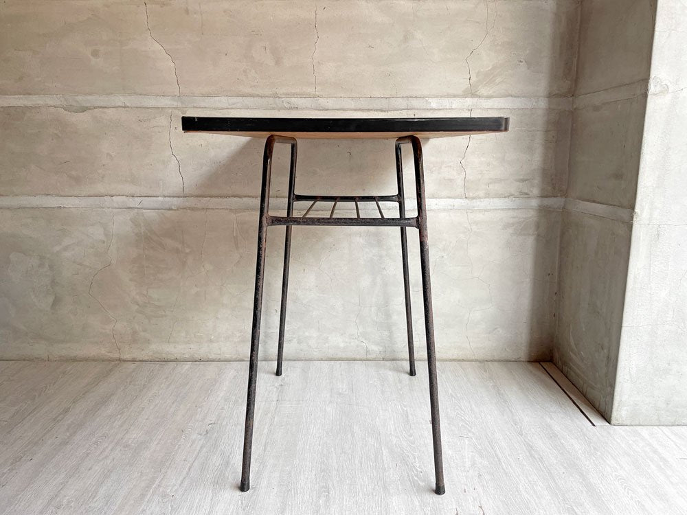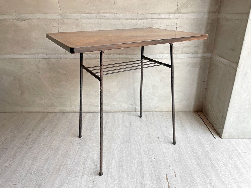 ジャパンビンテージ Japan Vintage 日本の古いサイドテーブル 作業台 デコラトップ 鉄脚 昭和レトロ W75cm ♪