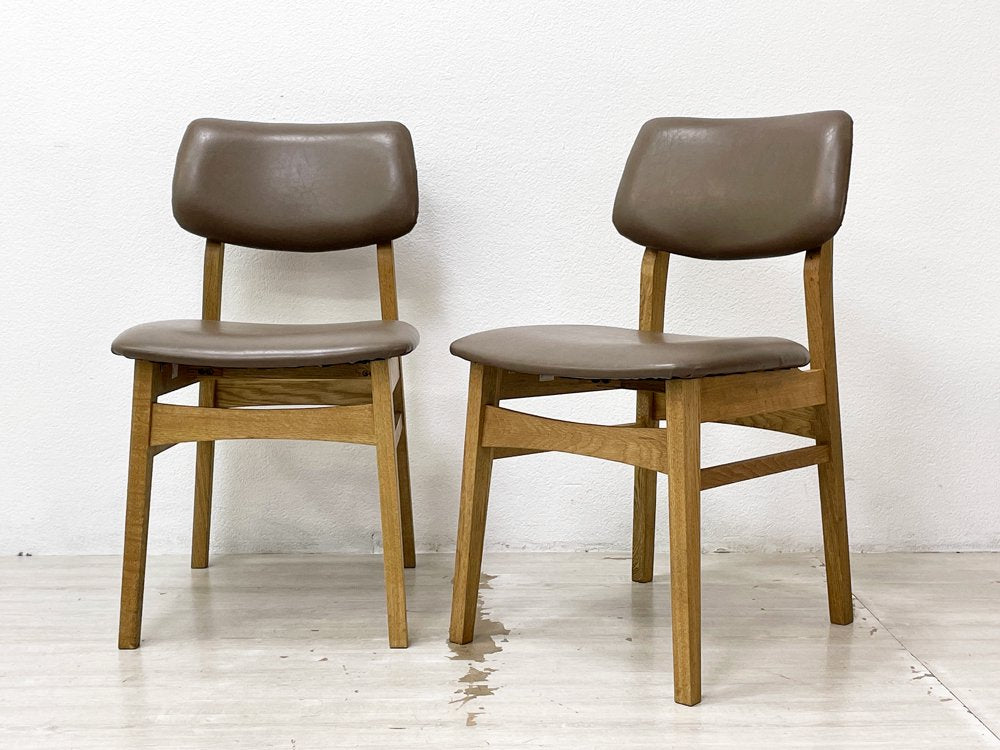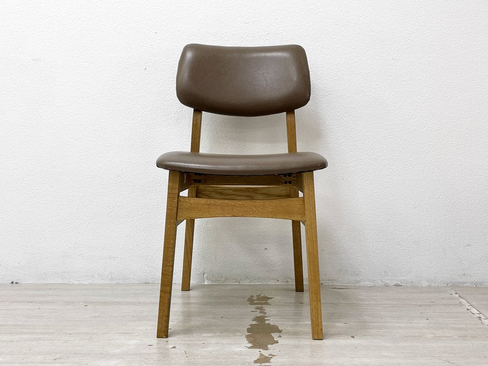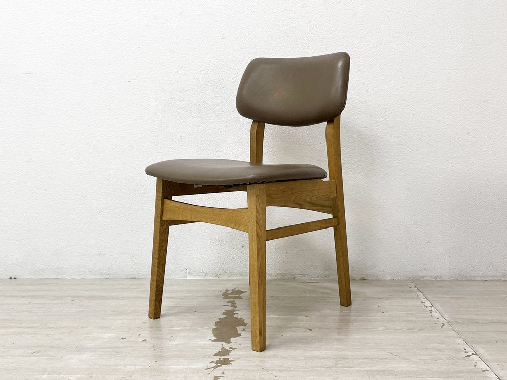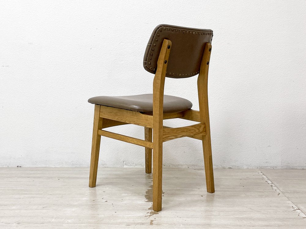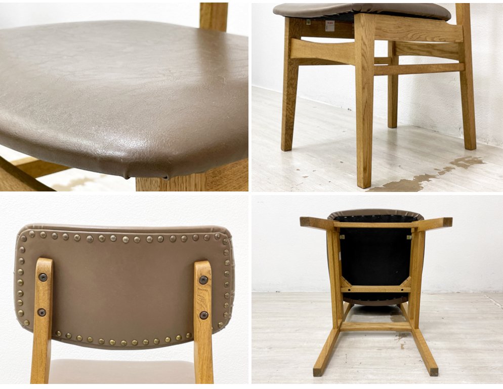 ノットアンティークス knot antiques パッドチェア PAD ダイニングチェア ナラ無垢材 オイル仕上げ PVCレザー オリーブ 鋲打 クラッシュゲート 定価¥25,300- B ●