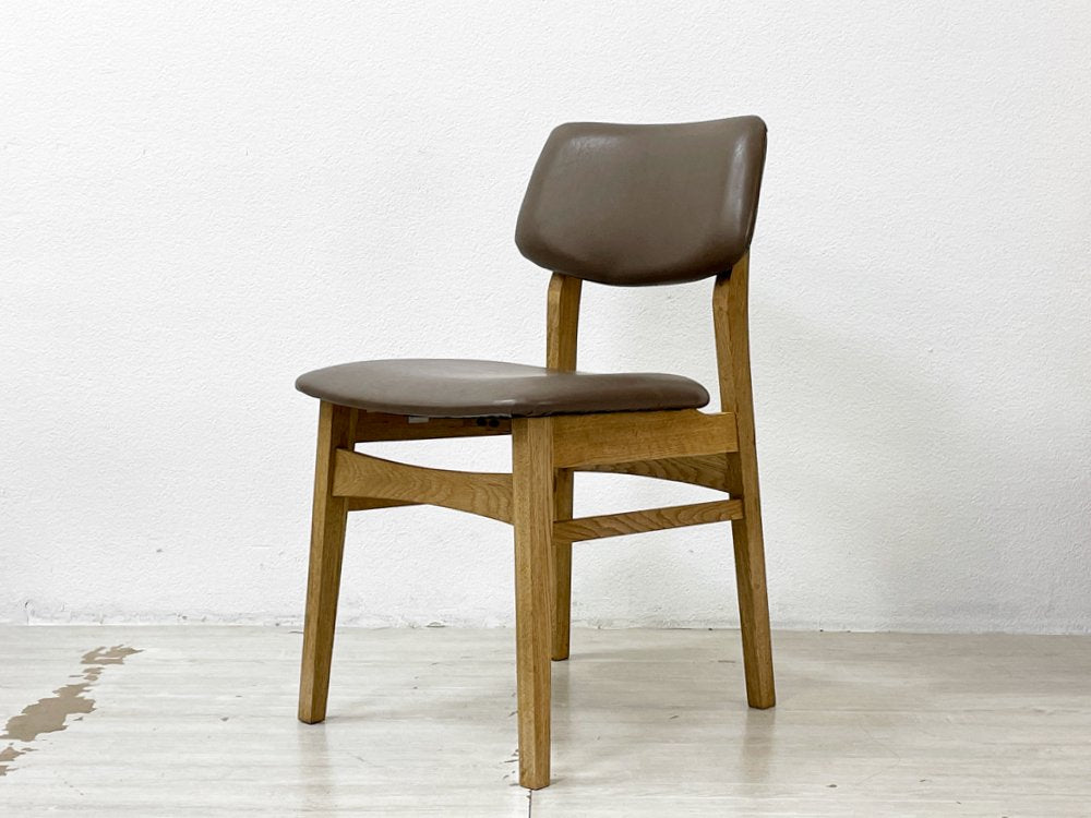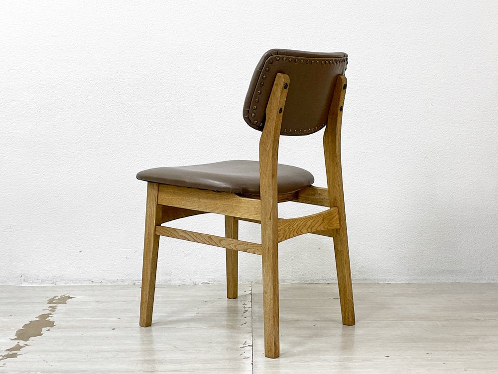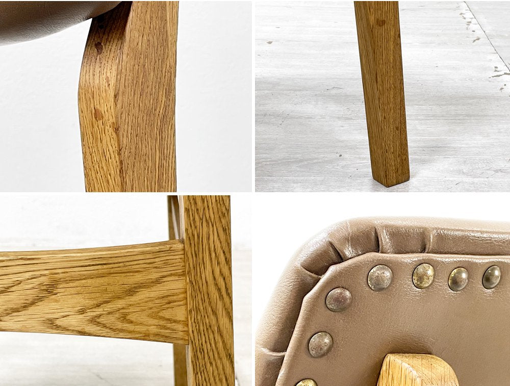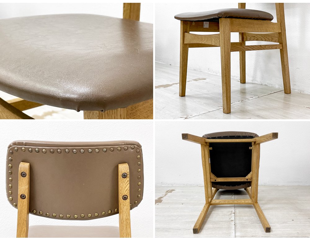 ノットアンティークス knot antiques パッドチェア PAD ダイニングチェア ナラ無垢材 オイル仕上げ PVCレザー オリーブ 鋲打 クラッシュゲート 定価¥25,300- A ●