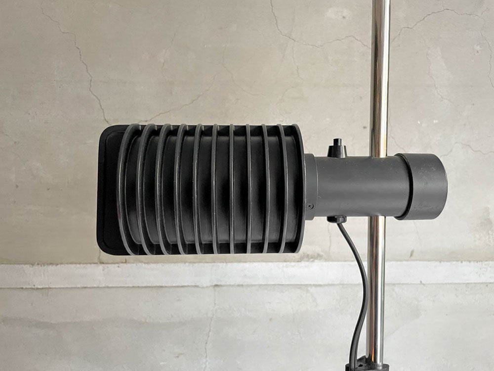 放熱効率を高めるヒートシンク状のアルミダイキャストのヘッドが特徴的なデザインのフロアライト。