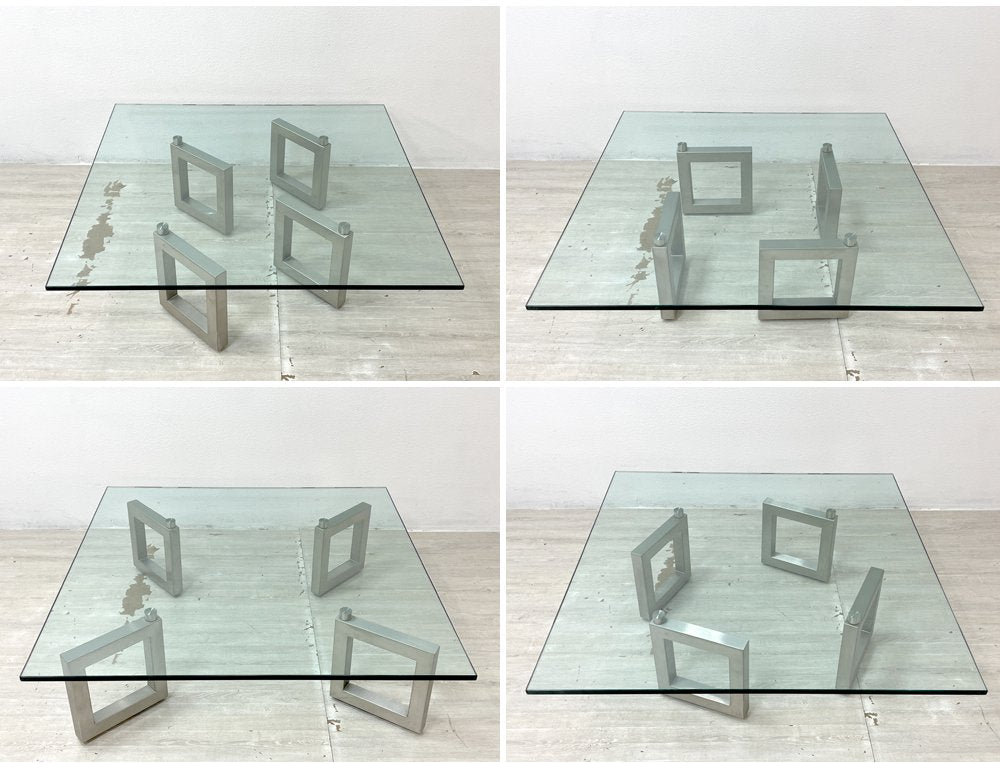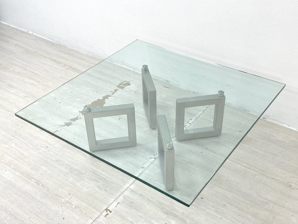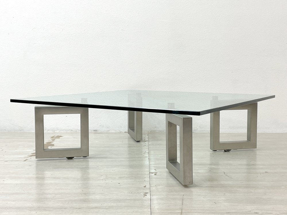 ローレンスフィッシャー Lourence Fisher ローリングスクエアコーヒーテーブル ガラス天板×キャスターベース コンランショップ取扱 オランダ製 ●