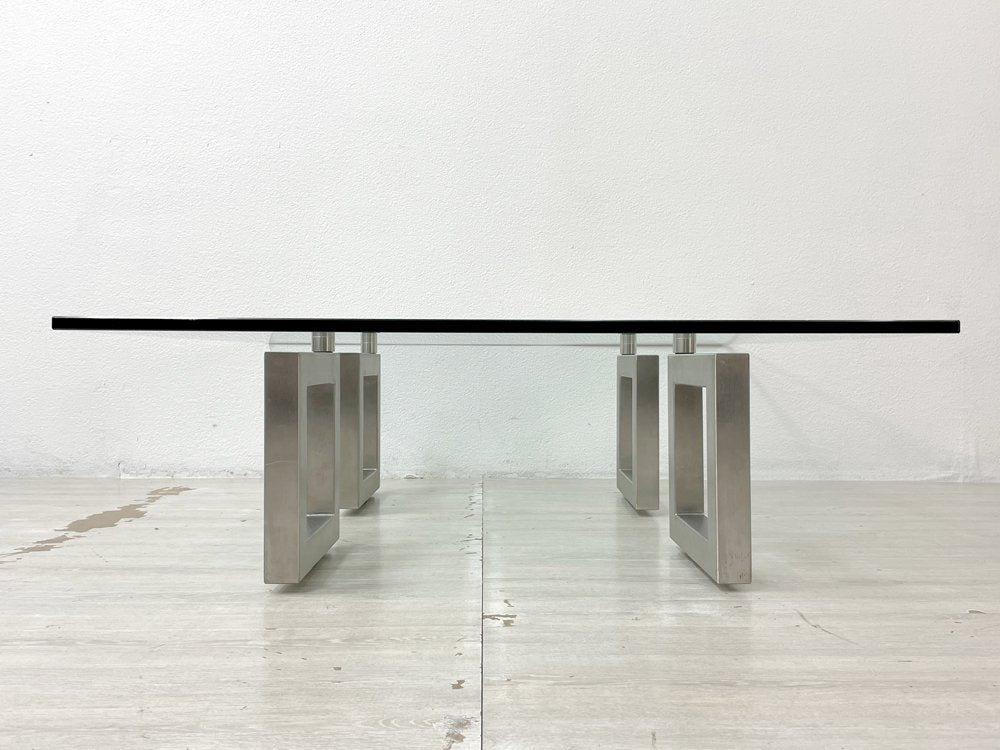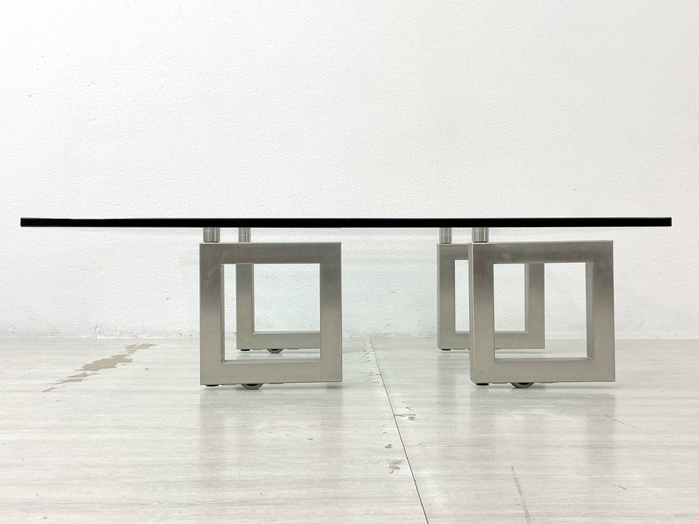 こちらは同社のガラステーブル“ローリングスクエアコーヒーテーブル Rolling Square Coffee Table”。